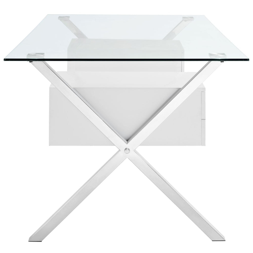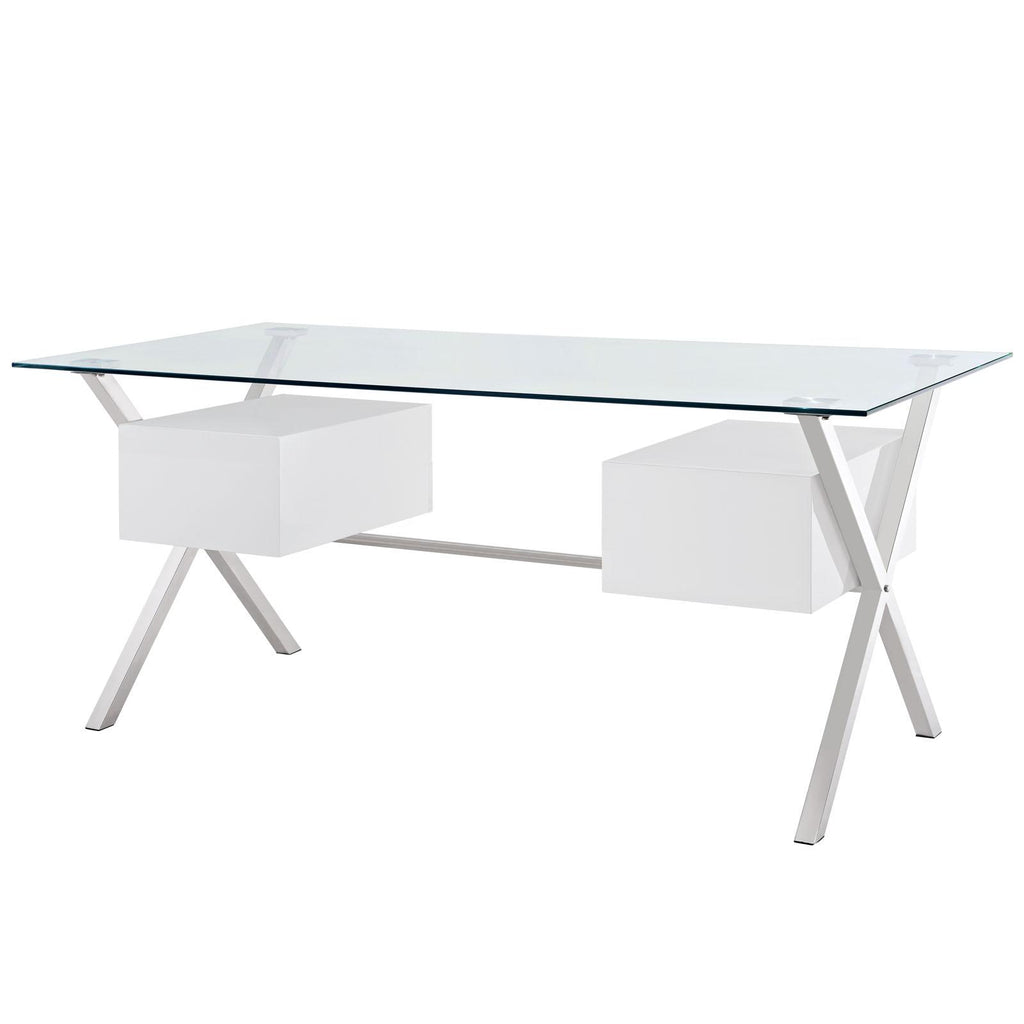 Keep your thoughts flowing with the Abeyance modern office desk. Suspended by a polished stainless steel frame, the right and left storage drawers balance an otherwise transparent piece. Outfitted with a tempered glass top, Abeyance encourages you to hold onto the thoughts that matter, and free your mind from distraction.