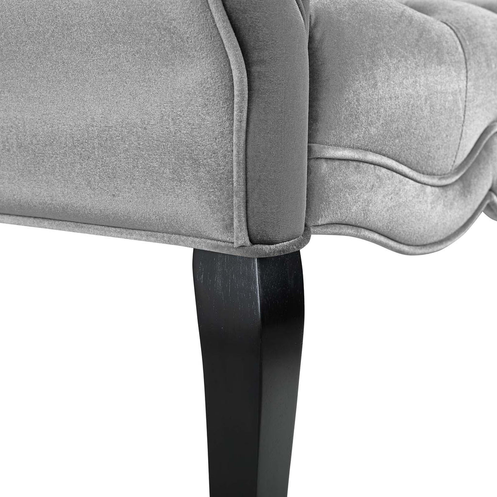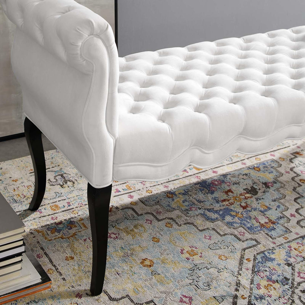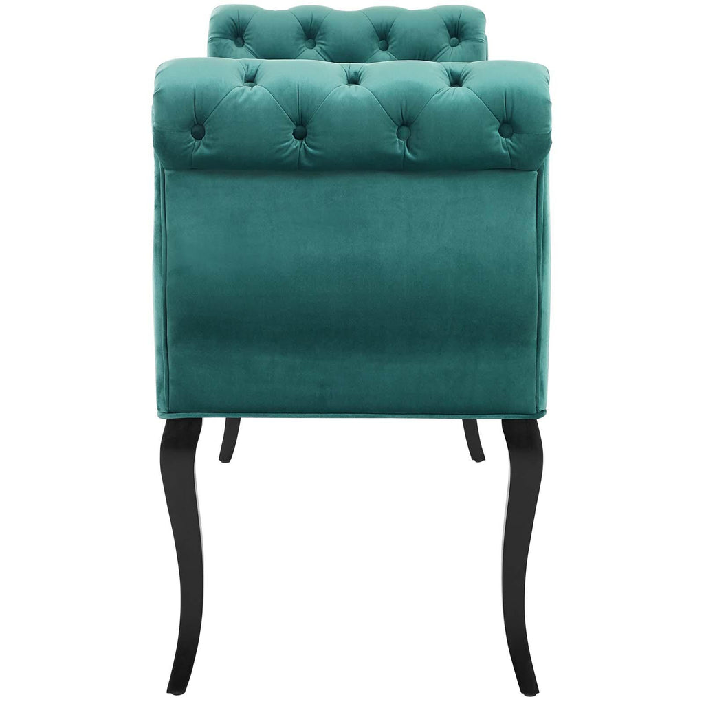 Celebrate whimsical charm and luxe opulence with the Adelia Chesterfield Style Performance Velvet Bench. A beautiful accent or extra seating solution, this entryway bench features deep button tufting, rolled armrests, delicate piping, and dense foam padding for a comfortable, supportive place to rest. This durable stain-resistant bench comes with rolled armrests, non-marking plastic foot caps, performance velvet polyester upholstery, and sits atop cabriole wood legs finished in wenge that elegantly complement the luxe texture. Adelia is a classic modern bench that makes a striking addition to your bedroom, living room, foyer, or any pass-through space. Bench Weight Capacity: 800 lbs. Set Includes: One - Adelia Chesterfield Style Button Tufted Bench Classic Chesterfield Style Entryway Bench Performance Velvet Polyester Upholstery Durable Stain-Resistant Fabric Elegant Deep Button Tufting Wenge Finish Wooden Legs Bench Weight Capacity: 800 lbs. Assembly Required Overall Product Dimensions: 20"L x 61.5"W x 32"H Seat Dimensions: 20"L x 49"W x 20.5"H Armrest Height from Seat: 11.5"H Armrest Height: 32"H