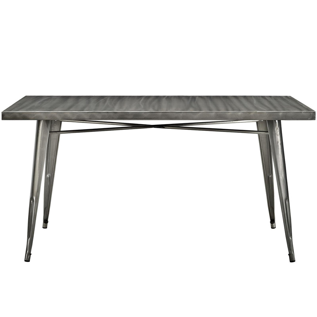 Welcome an industrial vibe with the Alacrity Table Series. Streamline d�cor with tapered gunmetal grey finished steel legs and top bolsters this inspiring piece made for eclectic d�cors. Whether you prefer the strip-down warehouse look or a more diverse blend of vintage and modern elements, Alacrity is an easy-to-assemble sturdy table that will aptly complement your urban or rustic farmhouse dwelling. This installment of the series is a square dining table that stands ready to enhance your dining experience.