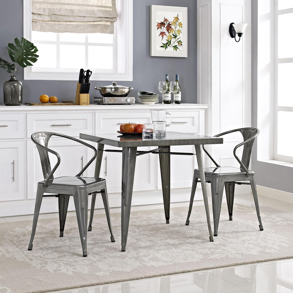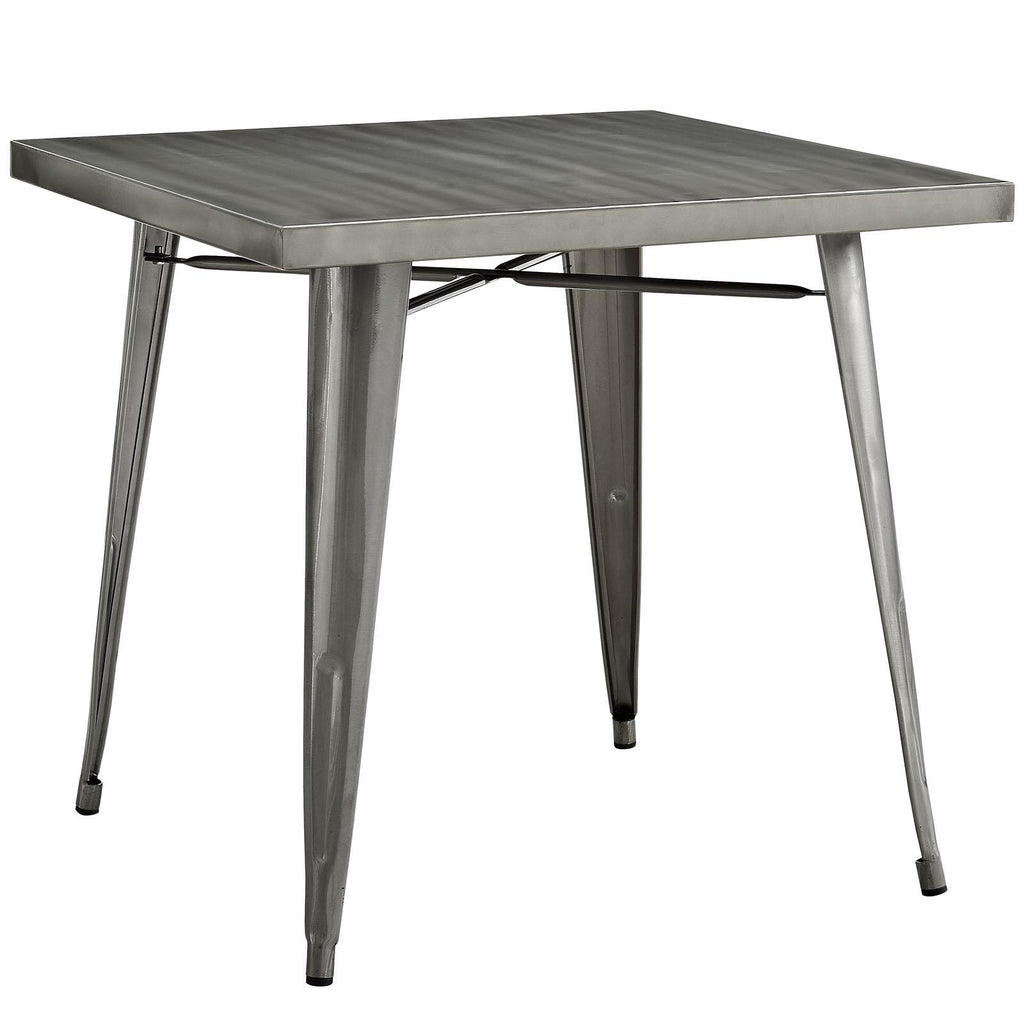 Welcome an industrial vibe with the Alacrity Table Series. Streamline d�cor with a tapered gunmetal grey finish steel legs and top bolsters this inspiring piece made for eclectic d�cors. Whether you prefer the strip-down warehouse look or a more diverse blend of vintage and modern elements, Alacrity is an easy-to-assemble sturdy table that will aptly complement your urban or rustic farmhouse dwelling. This installment of the series is a square dining table that stands ready to enhance your dining experience.