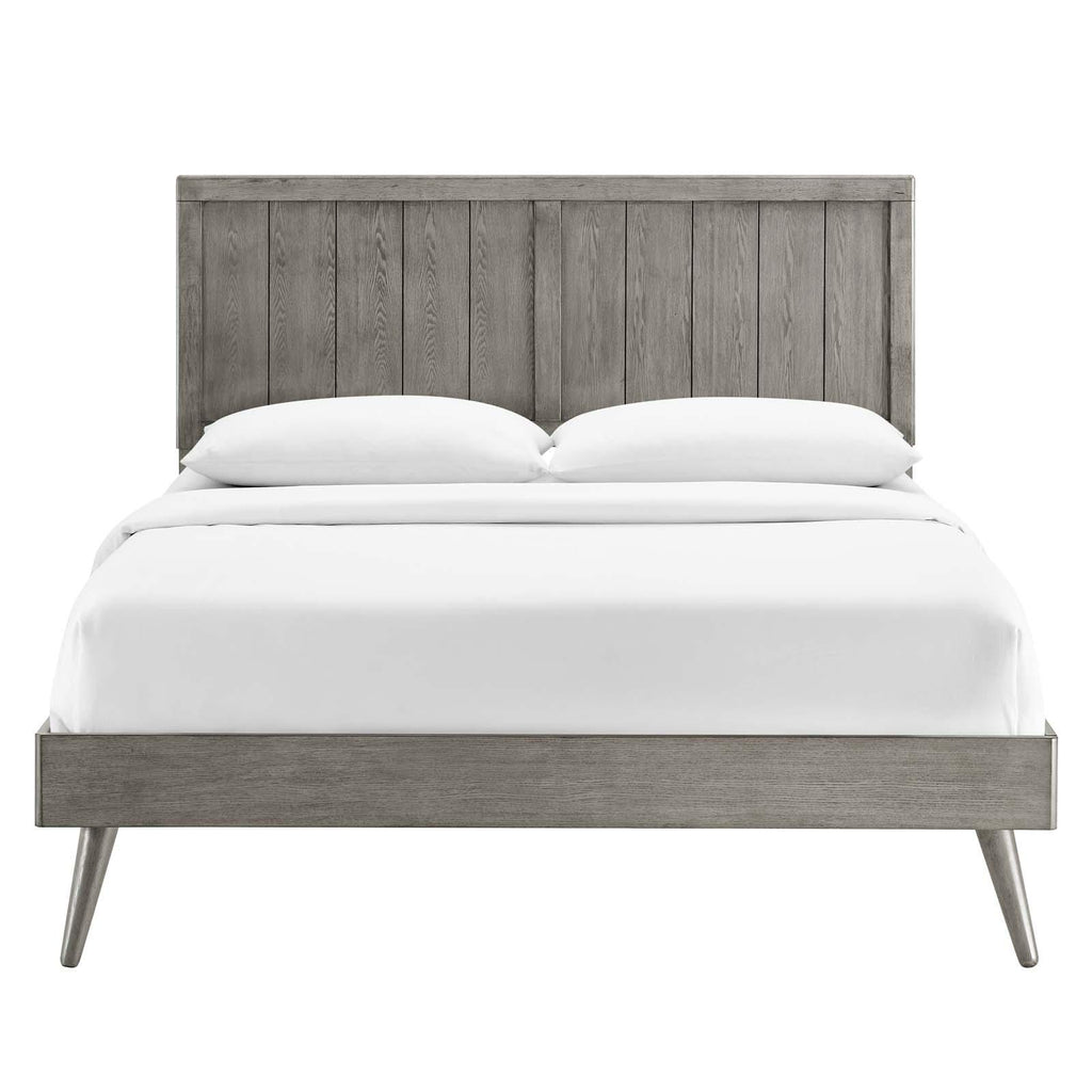 Bring modern style to the master bedroom or guest room with the retro detail and organic aesthetics of the Alana Wood Full Platform Bed. Inspired by mid-century design, the full headboard of this wood bed features beautiful wood paneling and contemporary accents. This platform bed frame is a sturdy addition to the bedroom with a durable wood, MDF, and veneer construction and splayed rubberwood legs. Eliminating the need for a box spring, this full bed is complete with a wood slat support system, reinforced center beam, and supporting legs that make it a lasting mattress foundation for memory foam, latex, innerspring, and hybrid mattresses. Assembly required. Full Bed Frame Weight Capacity: 601 lbs. Set Includes: One - Margo Full Platform Bed Frame One - Robbie Full Headboard Full Platform Bed Frame Full Headboard With Panel Detail "Wood, MDF, and Veneer Construction" Wood Slat Support System Rubberwood Legs Assembly Required Weight Capacity: 601 lbs. Overall Product Dimensions: 78"L x 57"W x 41 - 51"H Overall Full Headboard Dimensions: 0.5"L x 56"W x 41 - 51"H Overall Full Platform Bed Frame Dimensions: 77.5"L x 57"W x 15"H Footboard Dimensions: 0.5"L x 57"W x 6"H Side Rail Dimensions: 77.5"L x 0.5"W x 6"H Inner Bed Size: 76"L x 55.5"W