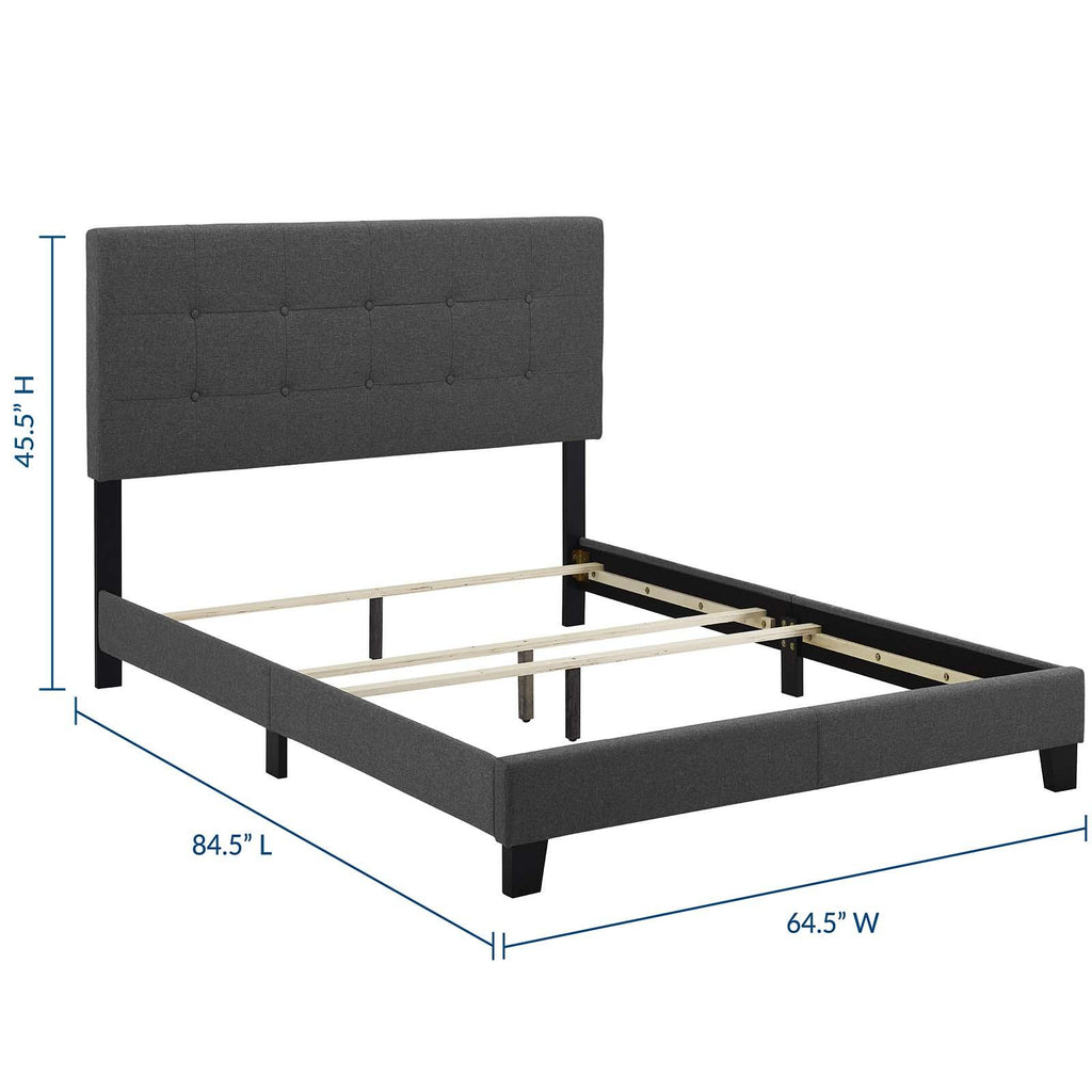Inspire sweet dreams with a cozy queen bed. Designed with chic elegance and contemporary style, Amira comes with a soft polyester fabric upholstered base, timeless button-tufted headboard, and wood bed frame and legs, with non-marking foot caps. Complete with a reinforced center beam for maximum stability, Amira accommodates memory foam, spring, latex, and hybrid mattresses. A sleek and sophisticated centerpiece to the master bedroom or guest suite, this modern bed effortlessly transforms your bedroom decor with its luxe look. Box spring required (not included). Bed Weight Capacity: 800 lbs.