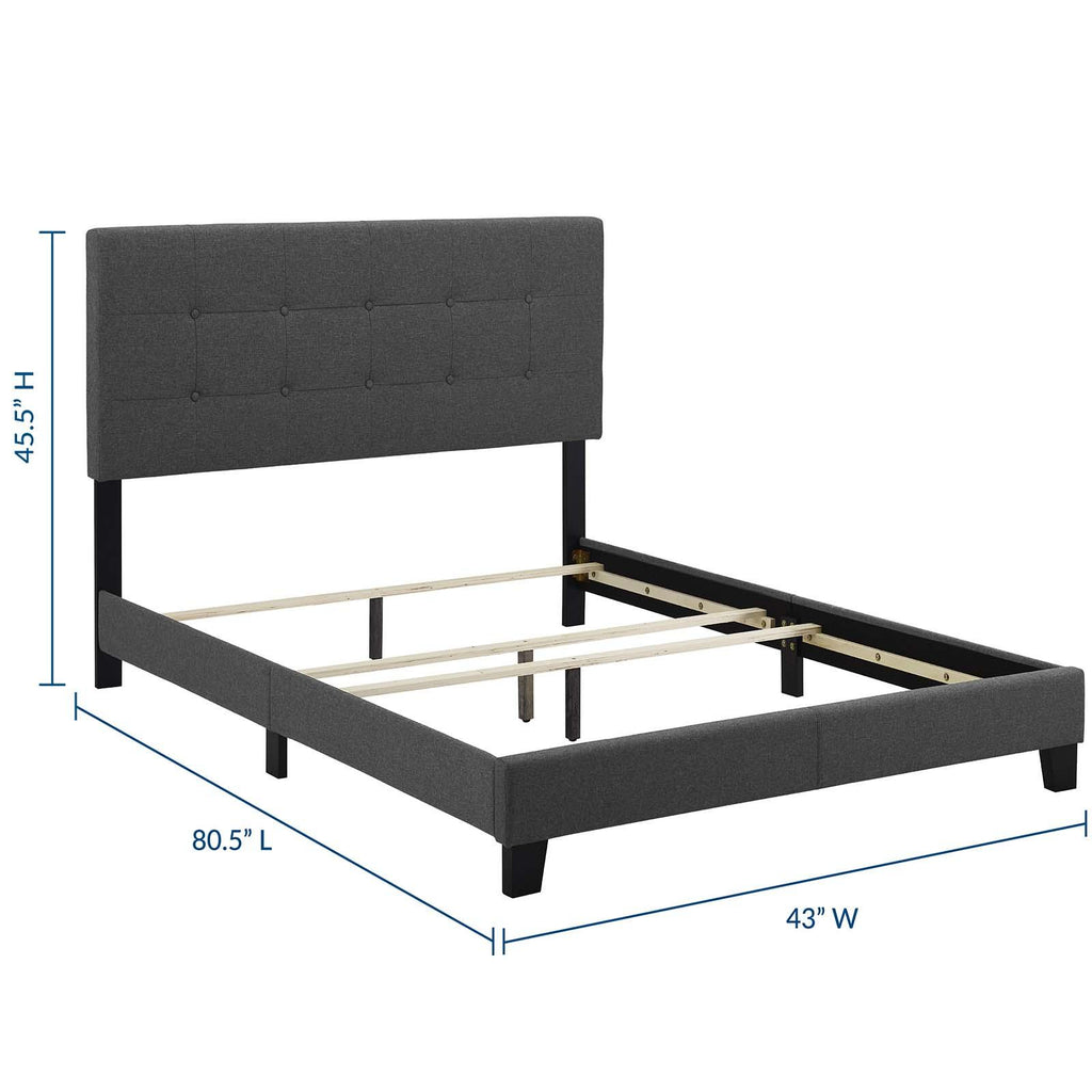 Inspire sweet dreams with a cozy twin bed. Designed with chic elegance and contemporary style, Amira comes with a soft polyester fabric upholstered base, timeless button-tufted headboard, and wood bed frame and legs, with non-marking foot caps. Complete with a reinforced center beam for maximum stability, Amira accommodates memory foam, spring, latex, and hybrid mattresses. A sleek and sophisticated centerpiece to the kid's bedroom or guest suite, this modern bed effortlessly transforms your bedroom decor with its luxe look. Box spring required (not included). Bed Weight Capacity: 800 lbs.
