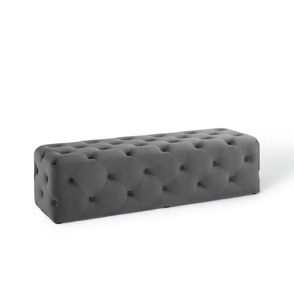 Enliven your decor with Amour. This tufted button entryway bench comes upholstered in soft and durable stain-resistant performance velvet fabric and dense foam padding for a luxurious seating experience. Instantly update your entryway, foyer, hallway, living room with this versatile 60-inch long bench. Bench Weight Capacity: 500 lbs.