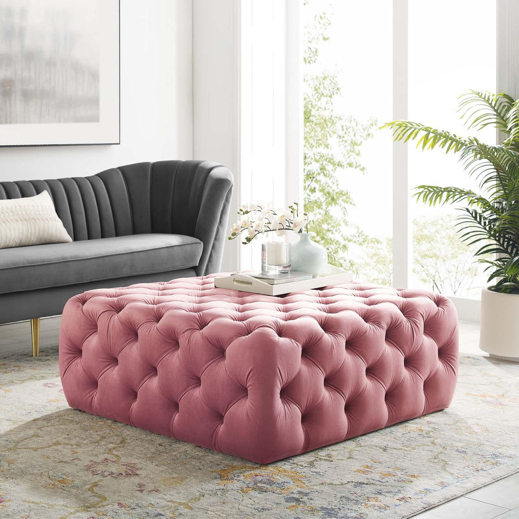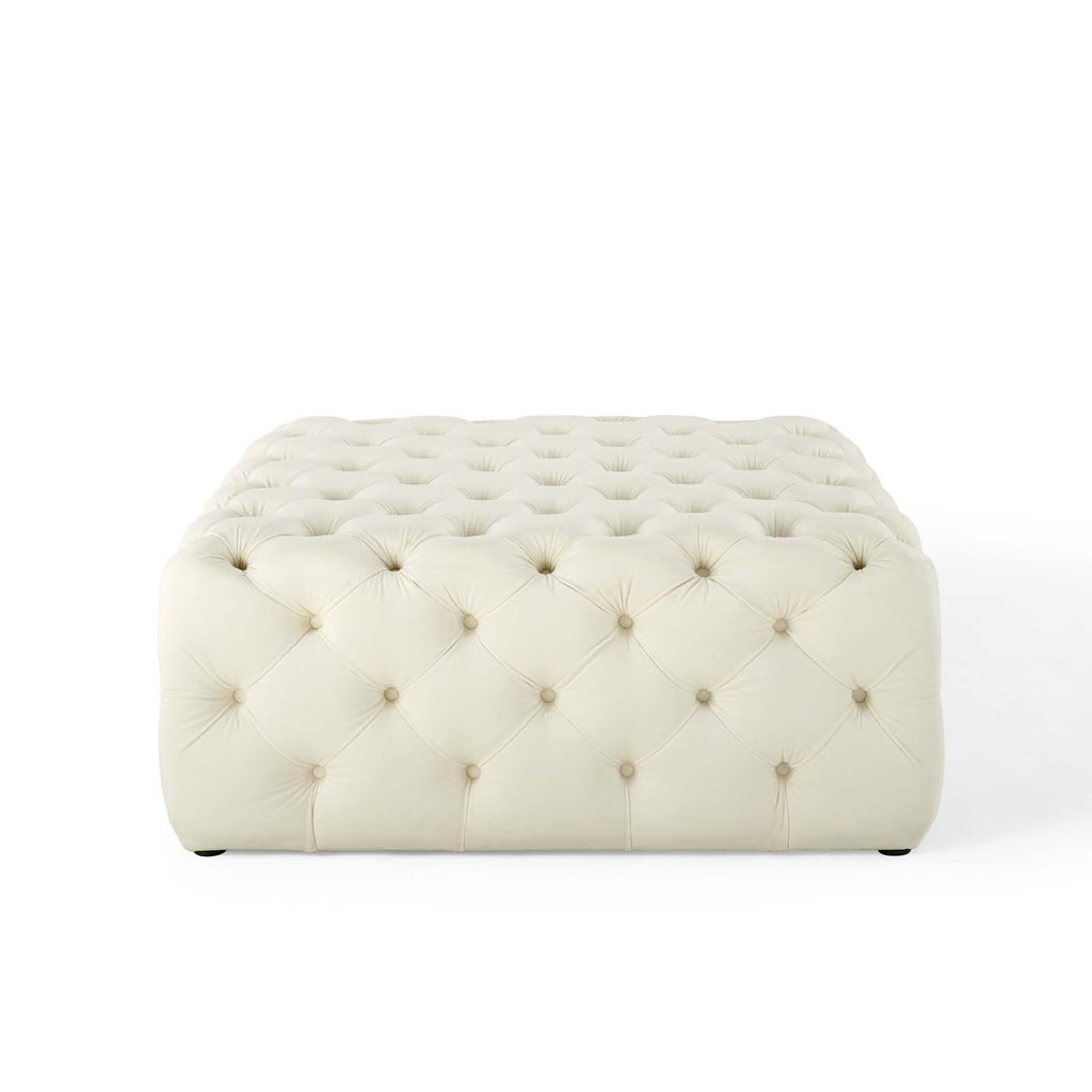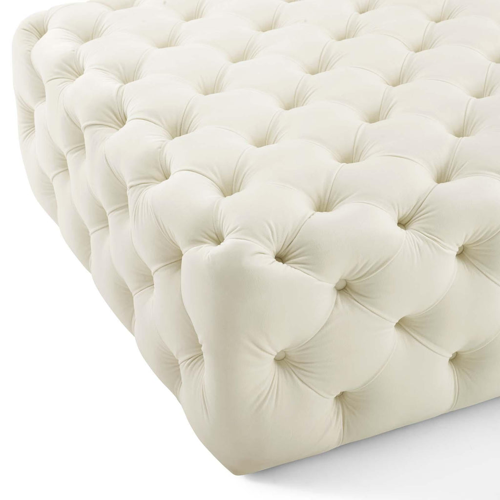 Amour Tufted Button Large Square Performance Velvet Ottoman