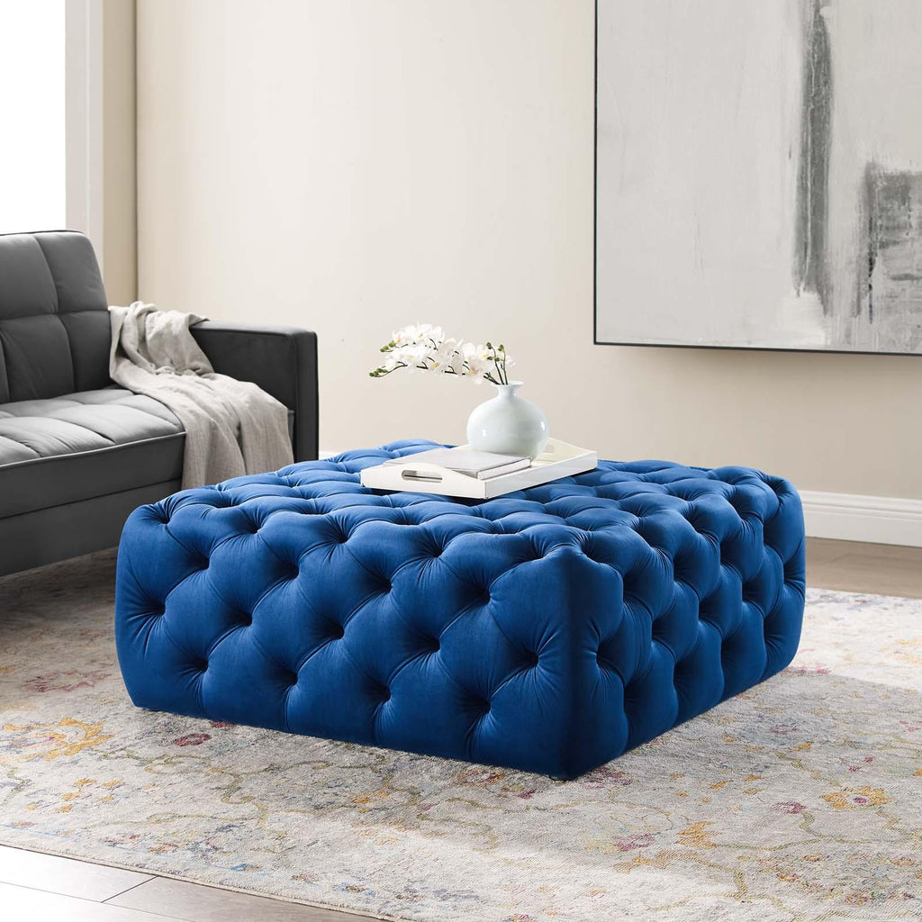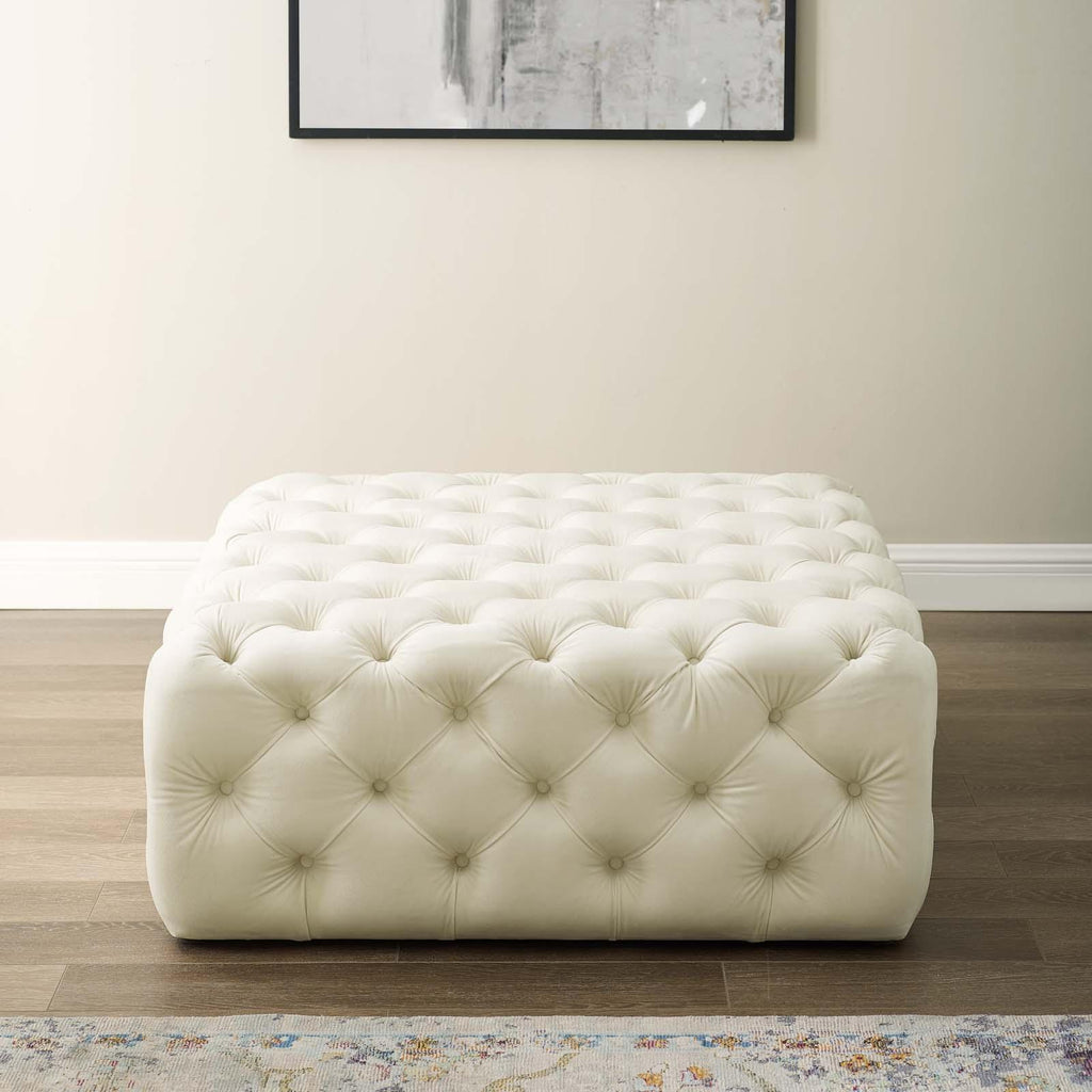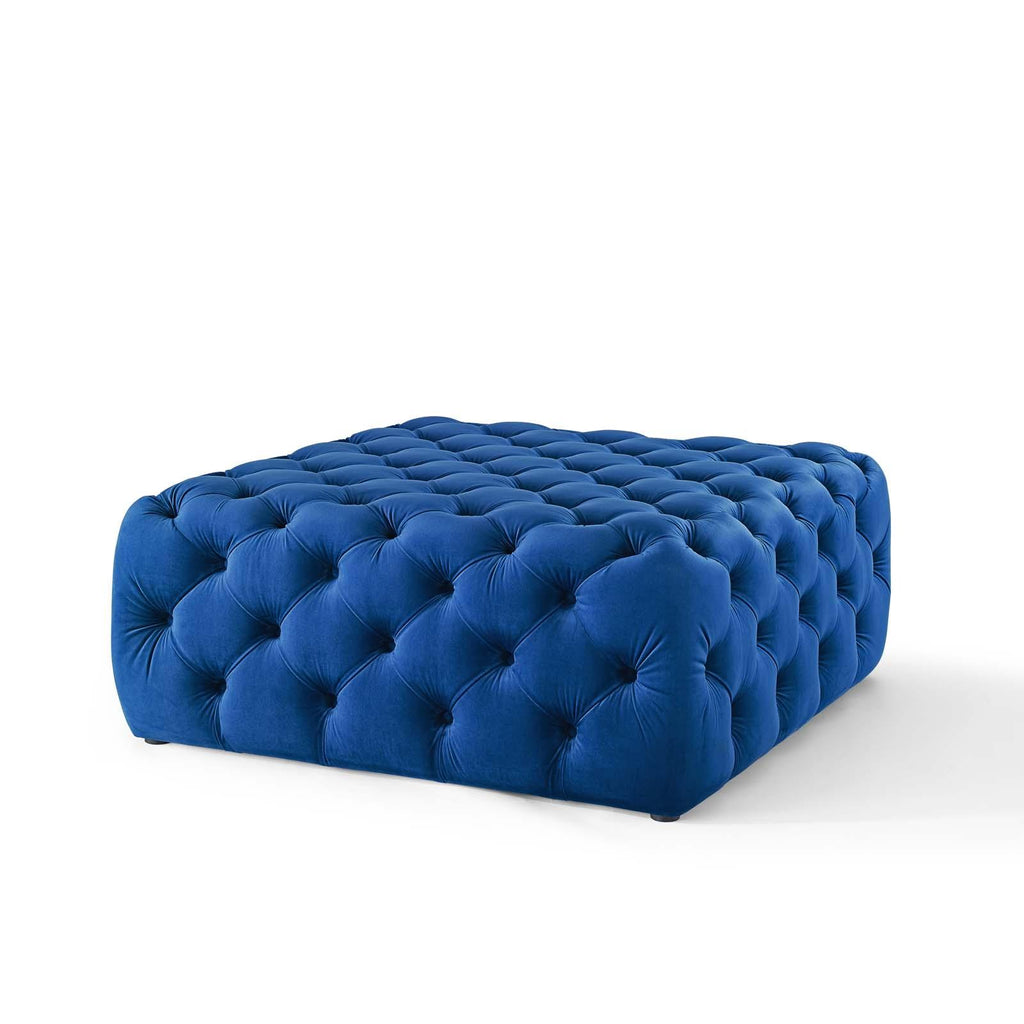 Amour Tufted Button Large Square Performance Velvet Ottoman
