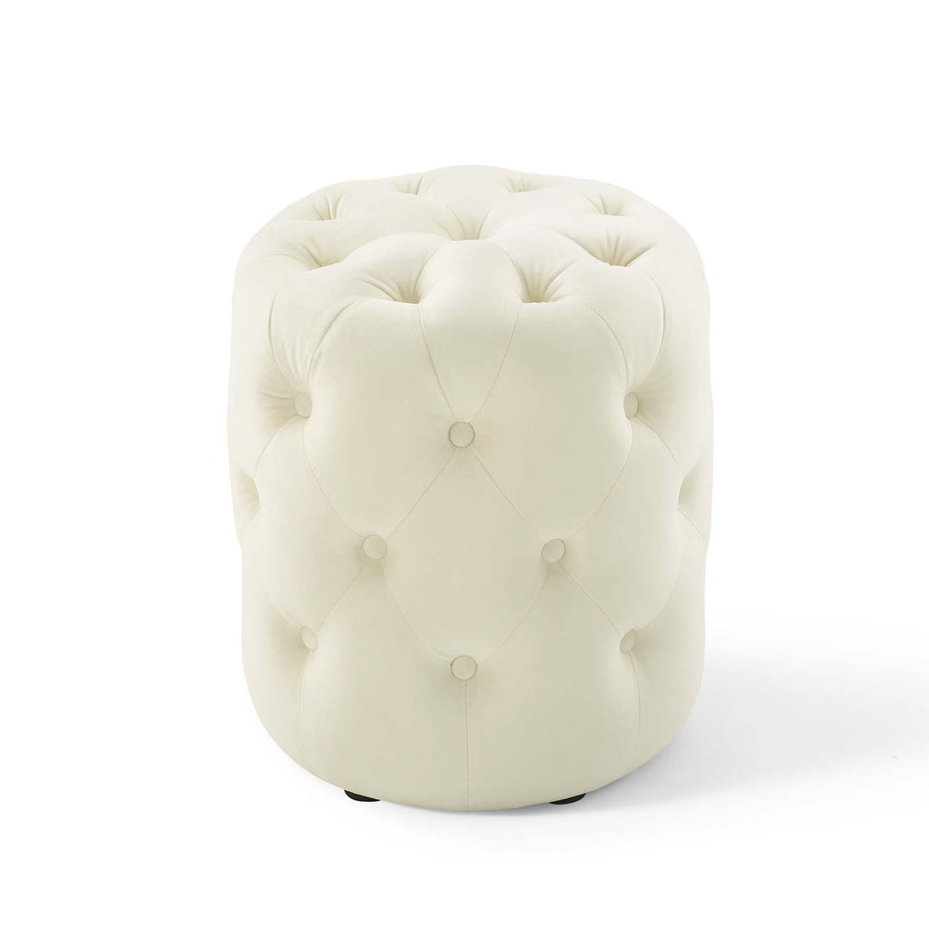 Enliven your decor with Amour. This tufted button round ottoman comes upholstered in soft and durable stain-resistant performance velvet fabric with dense foam padding for a luxurious seating experience. A versatile piece of furniture, instantly update your living room, bedroom, or entryway with this glamorous accent piece. Amour delivers an extra living room seat, a place to kick your feet up, or a convenient surface for magazines, and other leisure items. Ottoman Weight Capacity: 500 lbs. Set Includes: One - Amour Tufted Button Round Ottoman Tufted Button Accent Ottoman Performance Velvet Polyester Upholstery Durable Stain-Resistant Fabric Dense Foam Padding Ottoman Weight Capacity: 500 lbs Overall Product Dimensions: 15.5"L x 15.5"W x 18"H