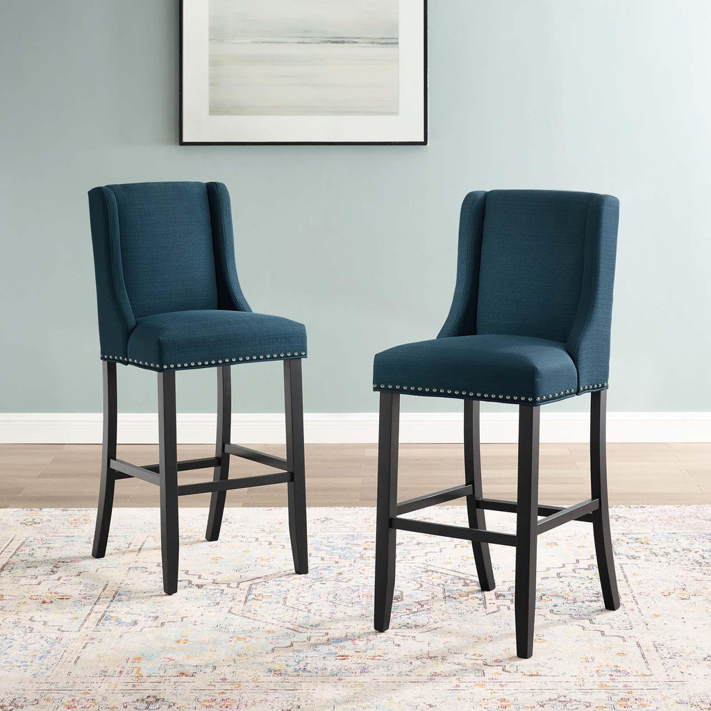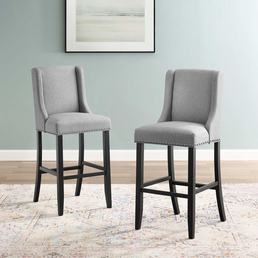 Explore the vast riches of a treasured heritage with the Baron Upholstered Fabric Bar Stool. Baron is an exceptionally made modern bar stool with an elegant back and footstool support. This dining pub stool features dense foam padding with a sinuous spring support system for added comfort and support. Boasting a solid wood frame with tapered legs and non-marking foot caps, Baron is a stylish upholstered fabric bar stool perfect for the apartment or home. Bar Stool Weight Capacity: 500 lbs.