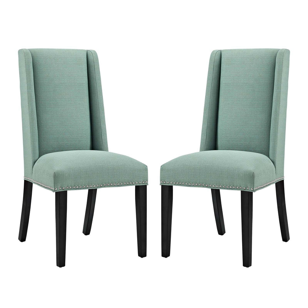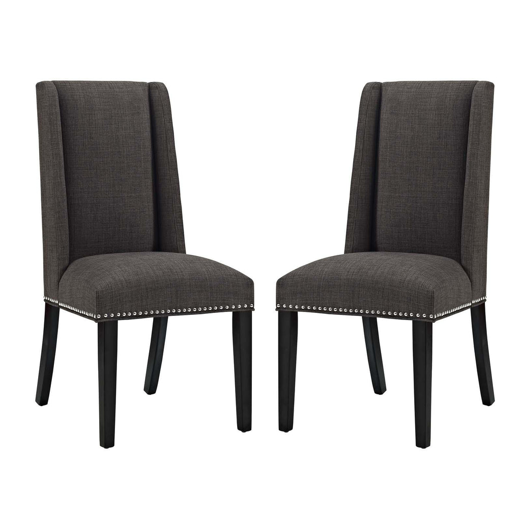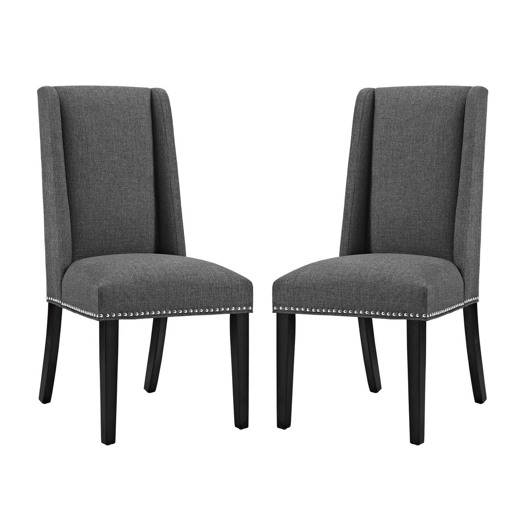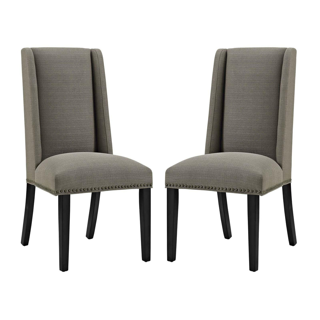 Explore the vast riches of a treasured heritage with the Baron Dining Chair. Designed to resonate elegance, Barons features a charming back and polished nailhead trimmed seat with a dash of grace and noble appeal. Complete with dense foam padding, fine fabric upholstery, solid wood frame and legs with non-marking foot glides, Baron is a stylish dining chair perfect for the modern home.