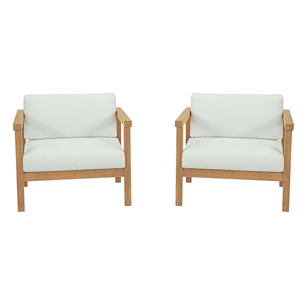 Savor leisure moments with the Bayport Teak Outdoor Collection. Become inspired by morning breezes and sunny afternoons with a series featuring configurations to accommodate any space. Made of solid teak wood with all-weather machine washable white cushions, Bayport comes designed with slanted backs and a variety of leisure seating selections. Known for its ability to withstand extreme weather conditions, teak is the wood selection of choice for long-lasting outdoor furnishings. Assembly required.