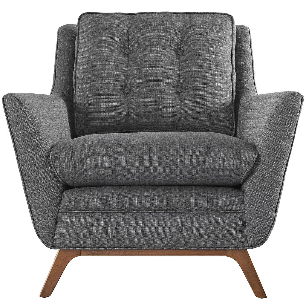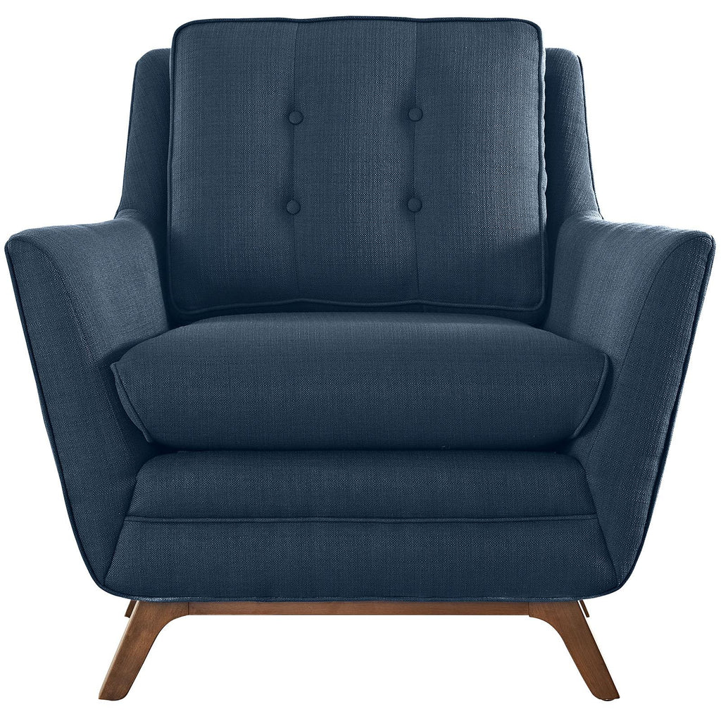 Dominate your d�cor with the expertly designed Beguile Collection. Exquisitely crafted with gently sloping arms, comfortable plush seat cushions, and adeptly tufted back cushion buttons, Beguile is a delightful collection that reinvents mid-century style. Outfitted with a solid wood walnut-stained base and fine fabric, Beguile comes perfect for living room, lounge and meeting areas. Set Includes: One - Beguile Armchair Walnut Stained Beech Wood Legs Plastic Foot Glides Finely Upholstered Fabric Chair Weight Capacity - 441 lbs. Overall Product Dimensions: 36"L x 36"W x 34.5"H Seat Dimensions: 23"L x 19"H Armrest Height: 4.5"H Backrest Height: 15.5"H Cushion Thichkness: 6"H
