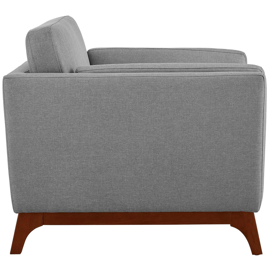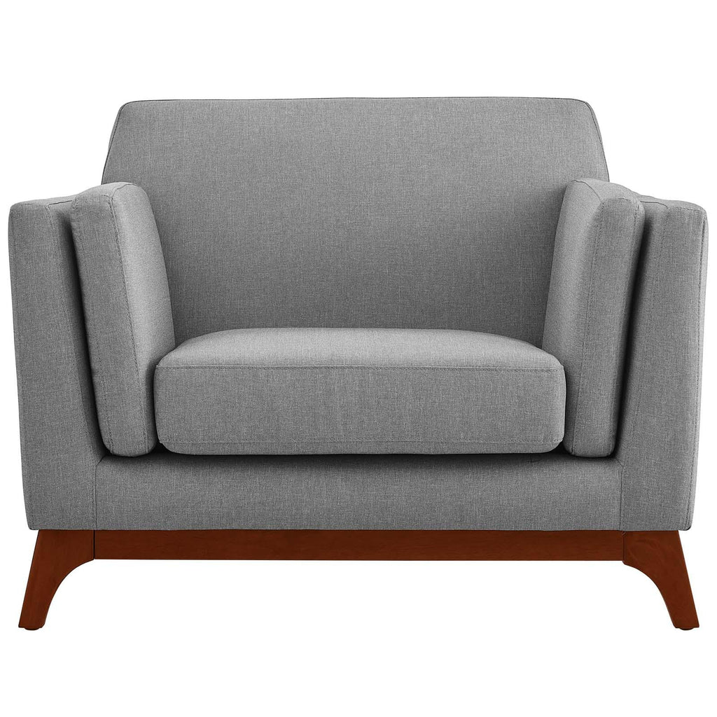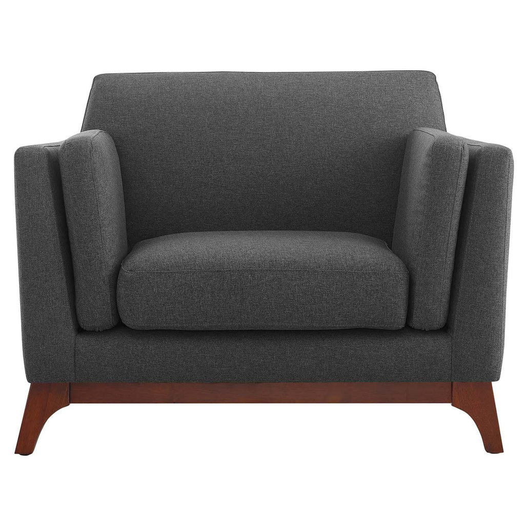 Distill organic mid-century charm with Chance Upholstered Fabric Armchair. Clean lines and flared arms add intrigue to the elegant silhouette, as the broad, oversized profile offers up a comfortable place to rest and relax. Finely upholstered in soft polyester fabric, Chance features plush, dense foam padding, removable cushions for easy cleaning with machine-washable cushion covers, a solid wood frame with tapered legs, and plastic non-marking foot caps. Update your living room, lounge area, apartment or small living space with this low profile contemporary armchair perfect for all casual seating needs. Chair Weight Capacity: 331 lbs.