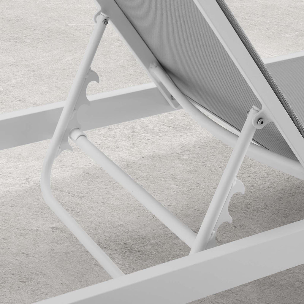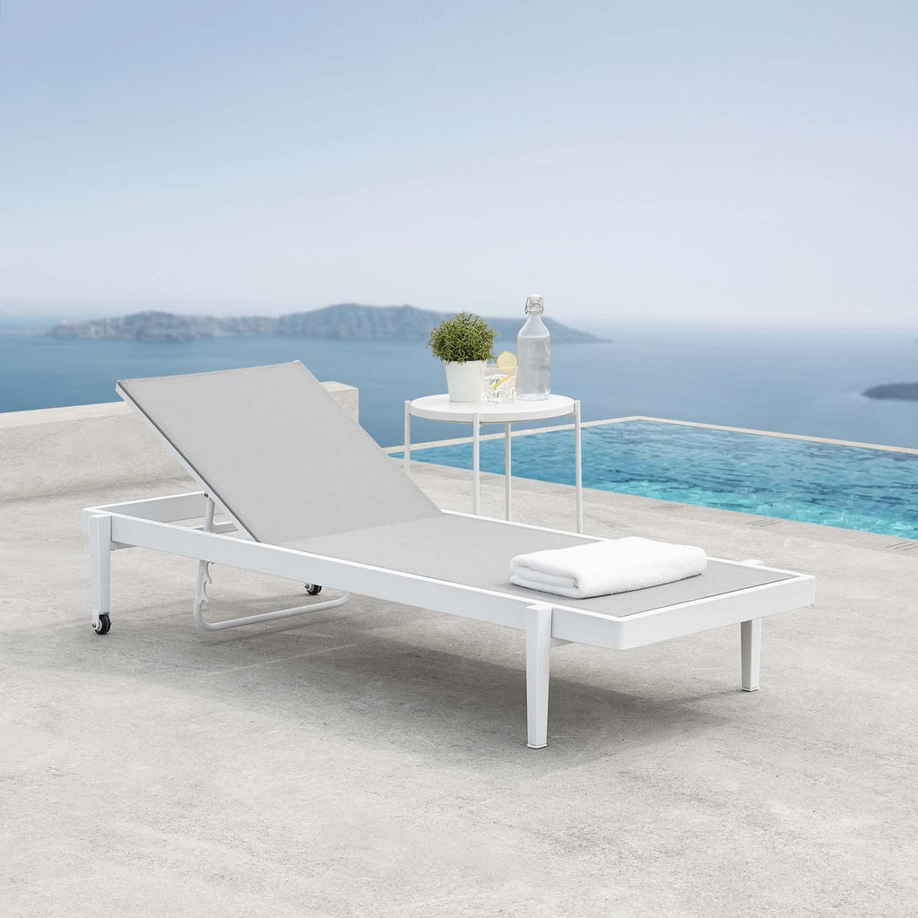 Streamline the style of your outdoor decor with the Charleston Outdoor Patio Aluminum Chaise Lounge Chair. Charleston Patio Lounge Chair has sleek minimalist lines that mix and match with a variety of patio furniture. Height adjustable with three levels, this patio chaise chair personalizes to your needs with ease. Rolling dual wheels allow for effortless custom positioning on your patio, poolside, backyard, deck, or other outdoor seating area. The solidly constructed powder-coated aluminum frame supports up to 341 lbs. All-weather Textilene mesh fabric provides durable support with easy-to-clean usage and allows natural airflow during relaxation.