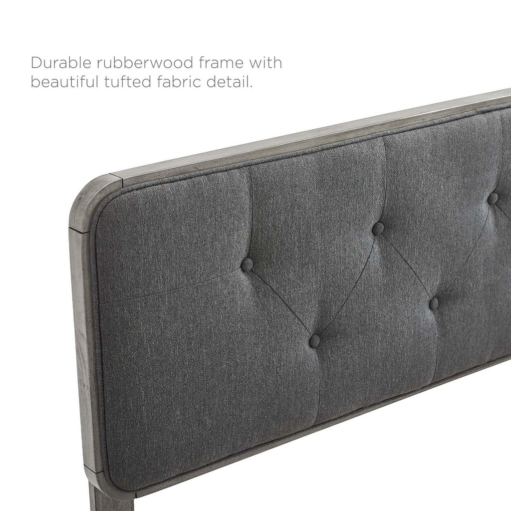 Infuse modern style into a guest bedroom, kid's room, or college dorm with the retro detail and organic aesthetics of the Collins Tufted Wood Twin Headboard. Inspired by mid-century style, this upholstered headboard features a classic button tufted design framed in rich wood grain. Adapting to almost any decor theme with the option of interchangeable bed frames, this twin size headboard is compatible with the Billie and Margo bed frame collections for a customized look that's easily interchangeable. This wood headboard features dense foam padding, fabric upholstery, and a sturdy rubberwood and MDF construction for lasting durability. Refresh your bedroom with customizable bedroom furniture. Assembly required.