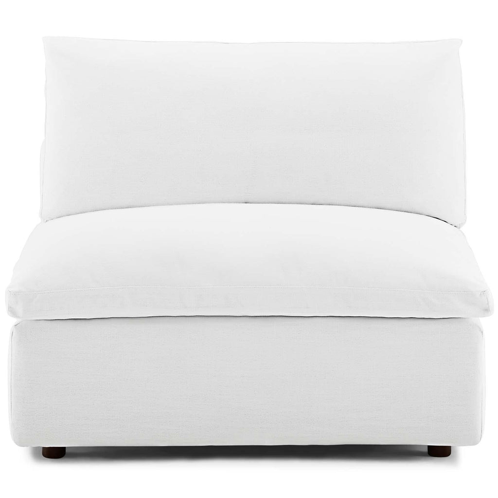 A haven for cozy relaxation, Commix features plush comfort, clean-lined design, and spacious profile, that makes an attractive statement in the modern home. Upholstered in soft polyester fabric, this contemporary armless chair comes with solid wood construction and cotton and down cushions for a luxurious sink-in feel. Commix comes with generously padded down feather and cotton cushions, and padded foam bases, making this sectional sofa collection perfect for the living room, family room, or game room. Made for sprawling out or curling up, Commix beckons you and guests to sit and stay a while. Includes plastic foot glides. Armless Chair Weight Capacity: 331 lbs. Set Includes: One - Commix Down Filled Overstuffed Armless Chair Contemporary Modern Armless Chair 85% Polyester/15% Linen Fabric Upholstery Density Foam Seat Down Feather and Cotton Cushions Solid Wood Construction Assembly Required Chair Weight Capacity: 331 lbs. Overall Product Dimensions: 40"L x 39"W x 35"H Seat Dimensions: 24.5"L x 35"W x 19"H