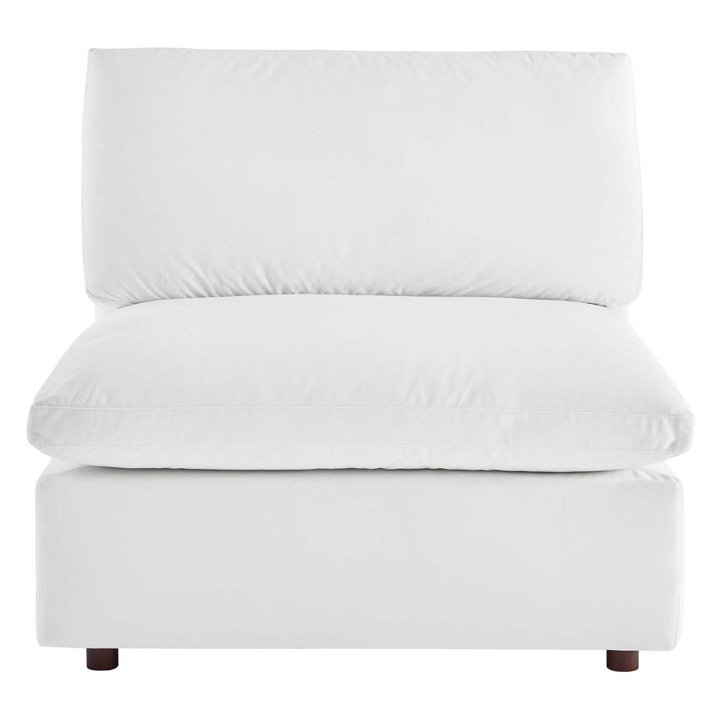 A haven for cozy relaxation, Commix features plush comfort, clean-lined design, and spacious profile, that makes an attractive statement in the modern home. Covered in stain-resistant performance velvet, this upholstered armless chair comes with a solid wood construction and foam padded and duck down cushions for a luxurious sink-in feel. Commix features overstuffed down feather cushions that offer a feeling of relaxation and calming comfort while lounging, making it the perfect addition to the living room, family room, or game room. Made for sprawling out or curling up, Commix beckons you and guests to sit and stay a while. Includes plastic foot glides. Armless Chair Weight Capacity: 331 lbs. Set Includes: One - Commix Down Filled Overstuffed Armless Chair Contemporary Modern Armless Chair Stain-Resistant Performance Velvet Density Foam Seat Down Feather and Cotton Cushions Solid Wood Construction Assembly Required Armless Chair Weight Capacity: 331 lbs. Overall Product Dimensions: 40"L x 39"W x 35"H Seat Dimensions: 24.5"L x 39"W x 19"H