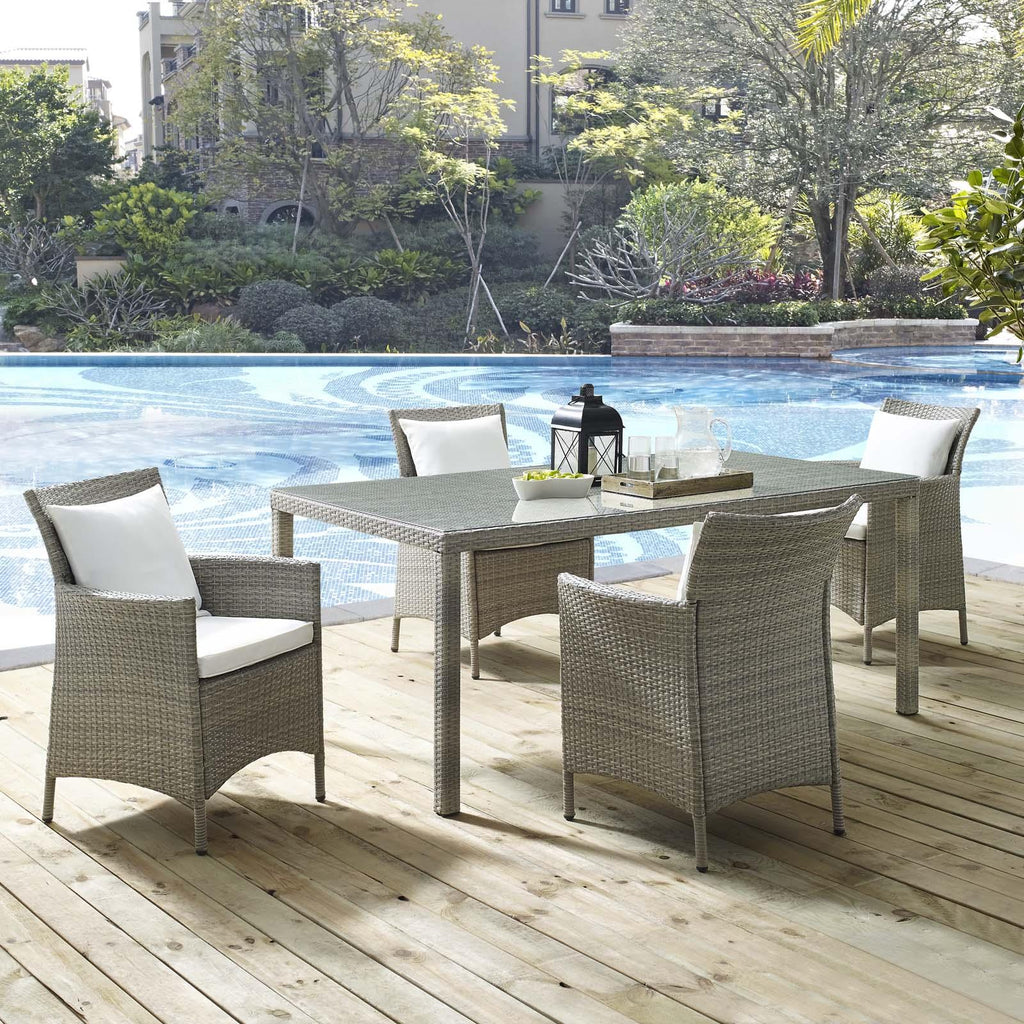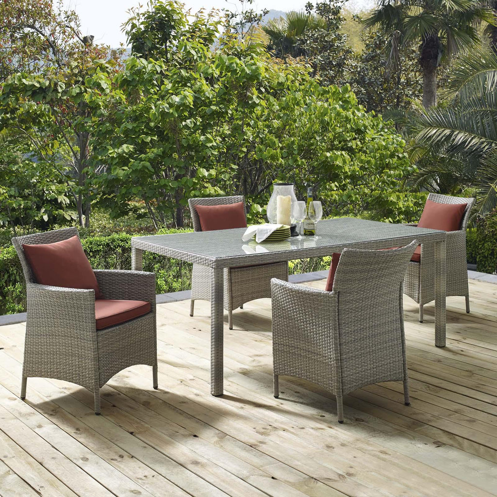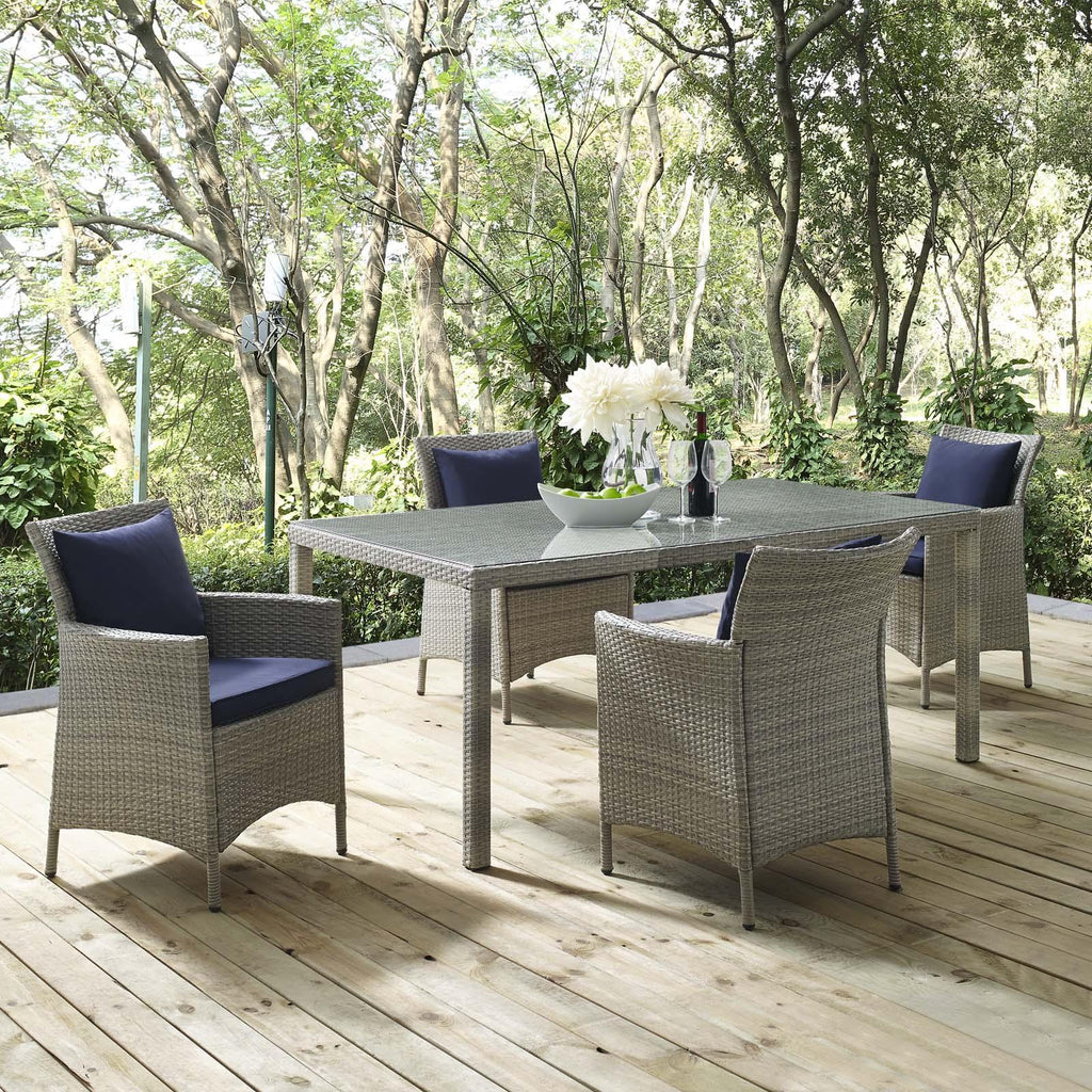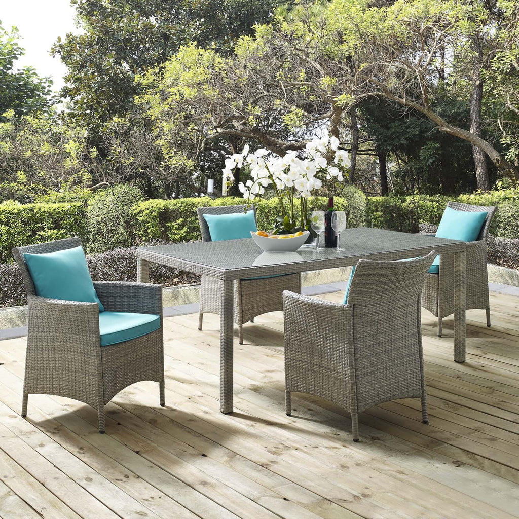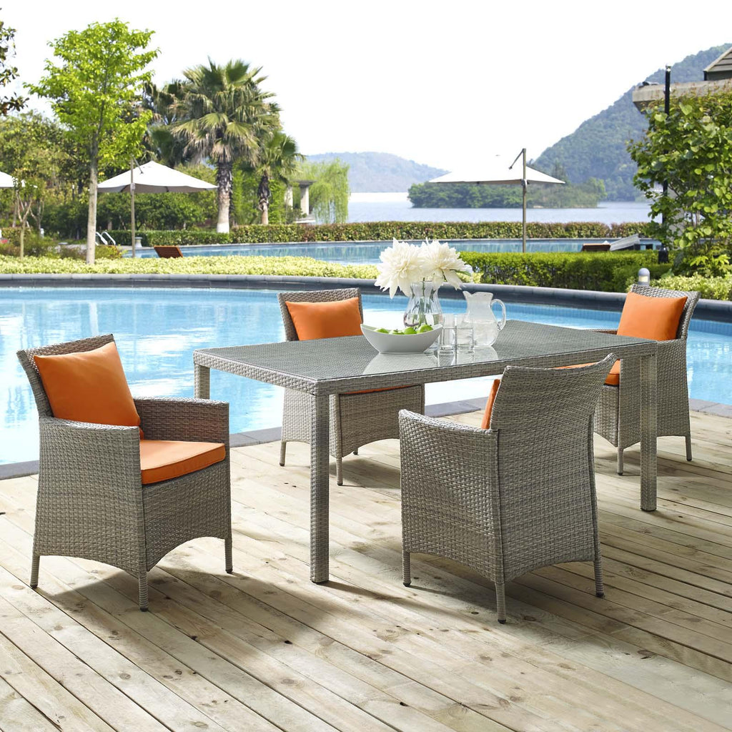 Refresh your alfresco space with the Conduit Outdoor Patio Dining Collection. Bringing transitional style with contemporary modern flair to any outdoor area, Conduit features a powder-coated aluminum frame wrapped in synthetic UV-resistant wicker rattan. Foam padded cushion and waterproof cover offer a comfortable seat while dining or entertaining. All-weather and long lasting, this versatile outdoor Collection creates a serene setting for your morning tea, sunny lunch, sunset cocktail, and everything in between.