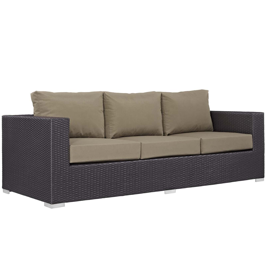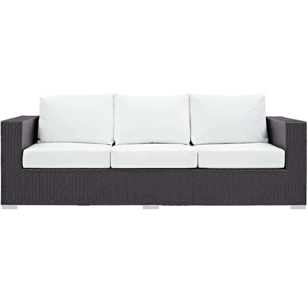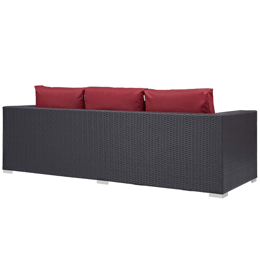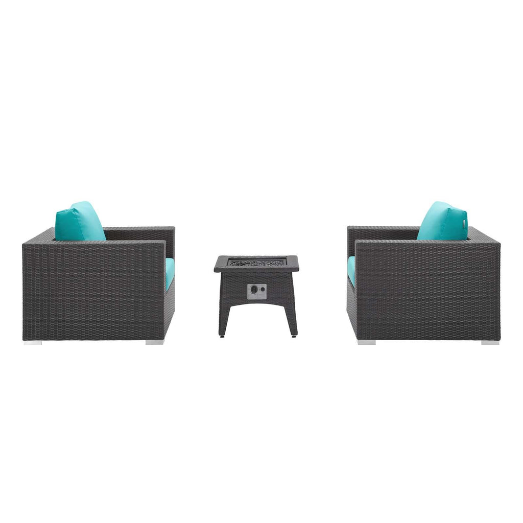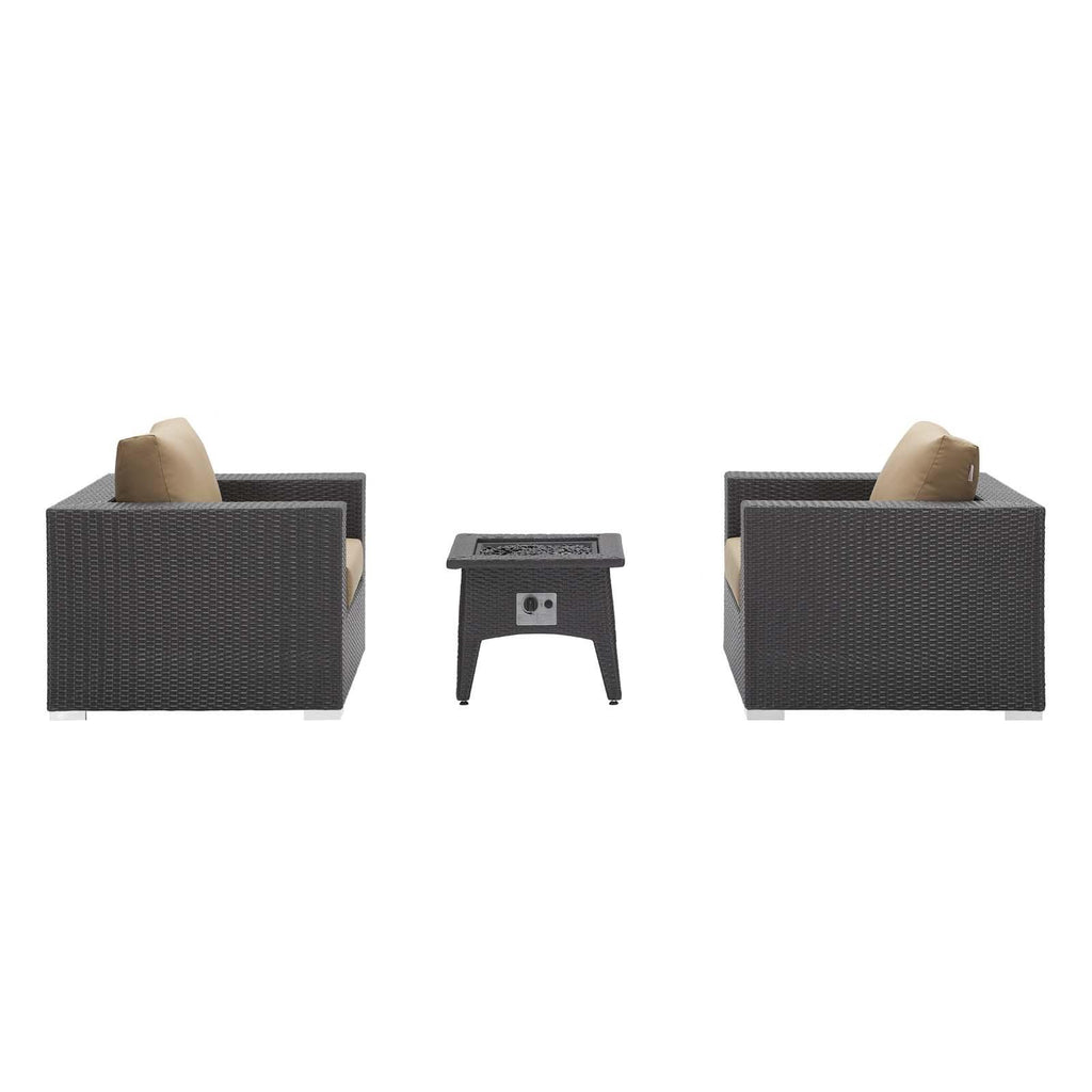 Enjoy the flickering flames of a warm fire or soak up the sunshine with family and friends with the Convene Outdoor Patio Furniture Set and Fire Table. A contemporary update to your outdoor living area, this patio set comes complete with durable aluminum frames wrapped in synthetic wicker rattan and densely padded foam cushions covered in water and UV-resistant covers that offer a serene lounging experience. The propane gas fire pit table features a magnesium oxide molding that mimics the look of rattan and wood with tempered glass beads to fill the center of the rectangular pit. Sturdy and safe, this fire table has a 40,000 BTU burner that creates a smoke-free flame, is CSA certified, easy to control, user-friendly with the turn of a knob and touch of an ignition button, and burns up to 8 hours on high or up to 16 hours on low. Designed for the backyard, patio, or poolside, this outdoor set is perfect for entertainment or relaxation and brings style and modern aesthetics to your outdoor space.