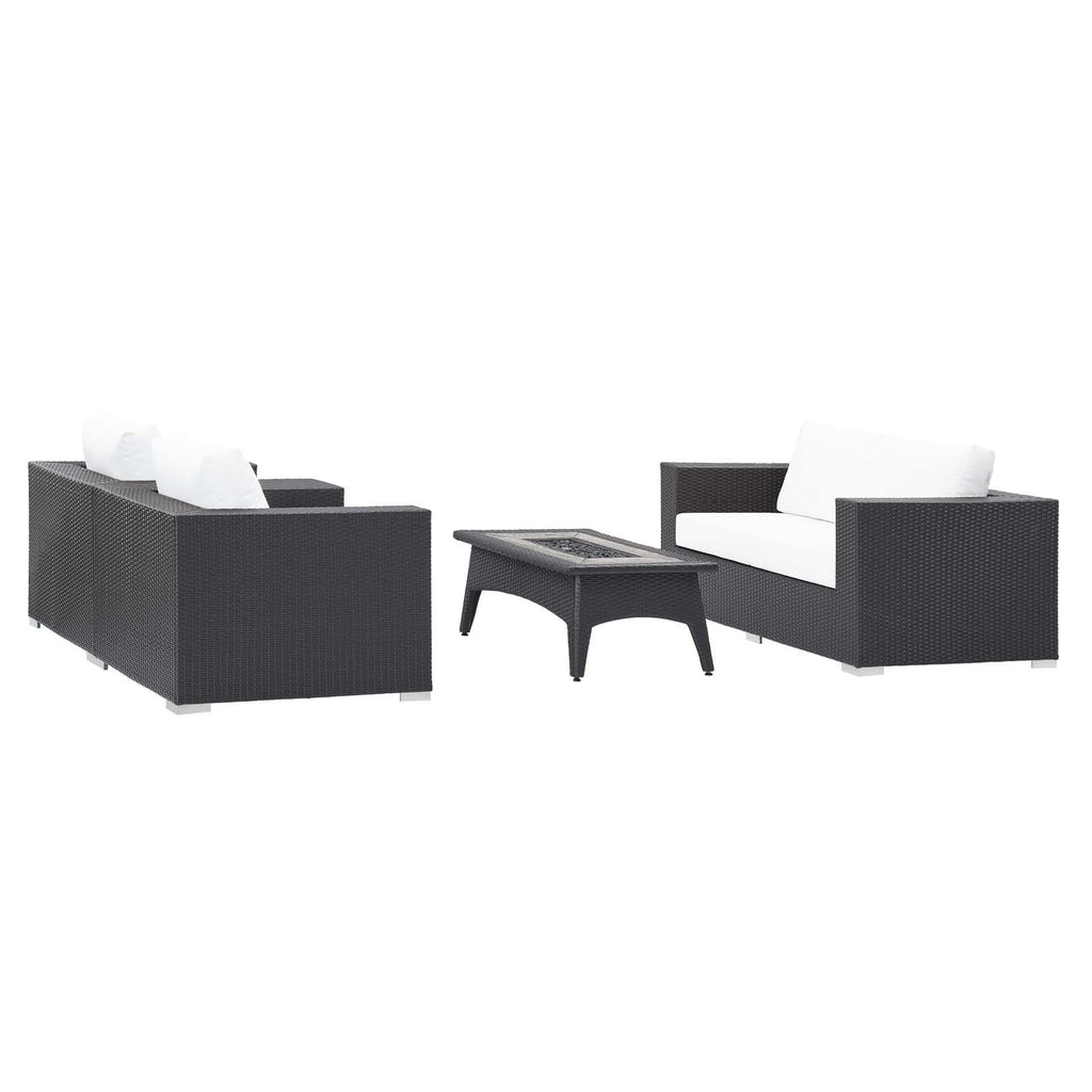 Enjoy the flickering flames of a warm fire or soak up the sunshine with family and friends with the Convene Outdoor Patio Furniture Set and Fire Table. A contemporary update to your outdoor living area, this patio set comes complete with durable aluminum frames wrapped in synthetic wicker rattan and densely padded foam cushions covered in water and UV-resistant covers that offer a serene lounging experience. The propane gas fire pit table features a magnesium oxide molding that mimics the look of rattan and wood with tempered glass beads to fill the center of the rectangular pit. Sturdy and safe, this fire table has a 40,000 BTU burner that creates a smoke-free flame, is CSA certified, easy to control, user-friendly with the turn of a knob and touch of an ignition button, and burns up to 8 hours on high or up to 16 hours on low. Designed for the backyard, patio, or poolside, this outdoor set is perfect for entertainment or relaxation and brings style and modern aesthetics to your outdoor space.