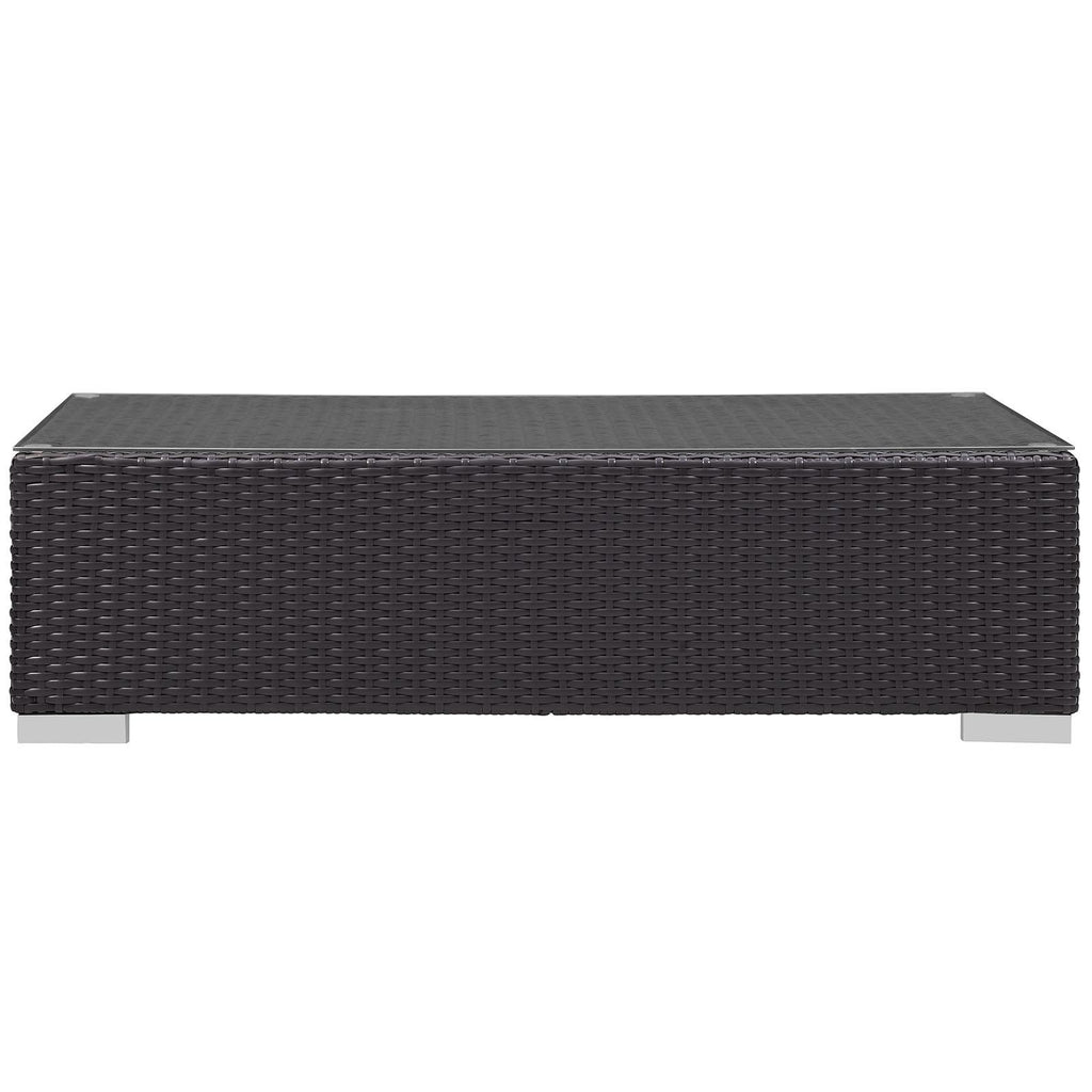 Gather stages of sensitivity with the Convene Outdoor Sectional series. Made with a synthetic rattan weave and a powder-coated aluminum frame, leave a positive impression on friends and family while enhancing your patio, backyard, or poolside repast in this series of palpable distinction. Convene is an Outdoor Patio Coffee Table that shifts and combines according to the spontaneous needs of the moment.