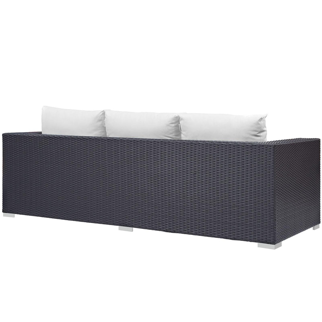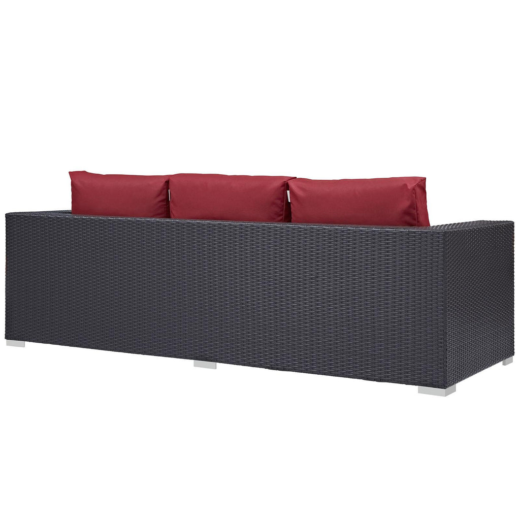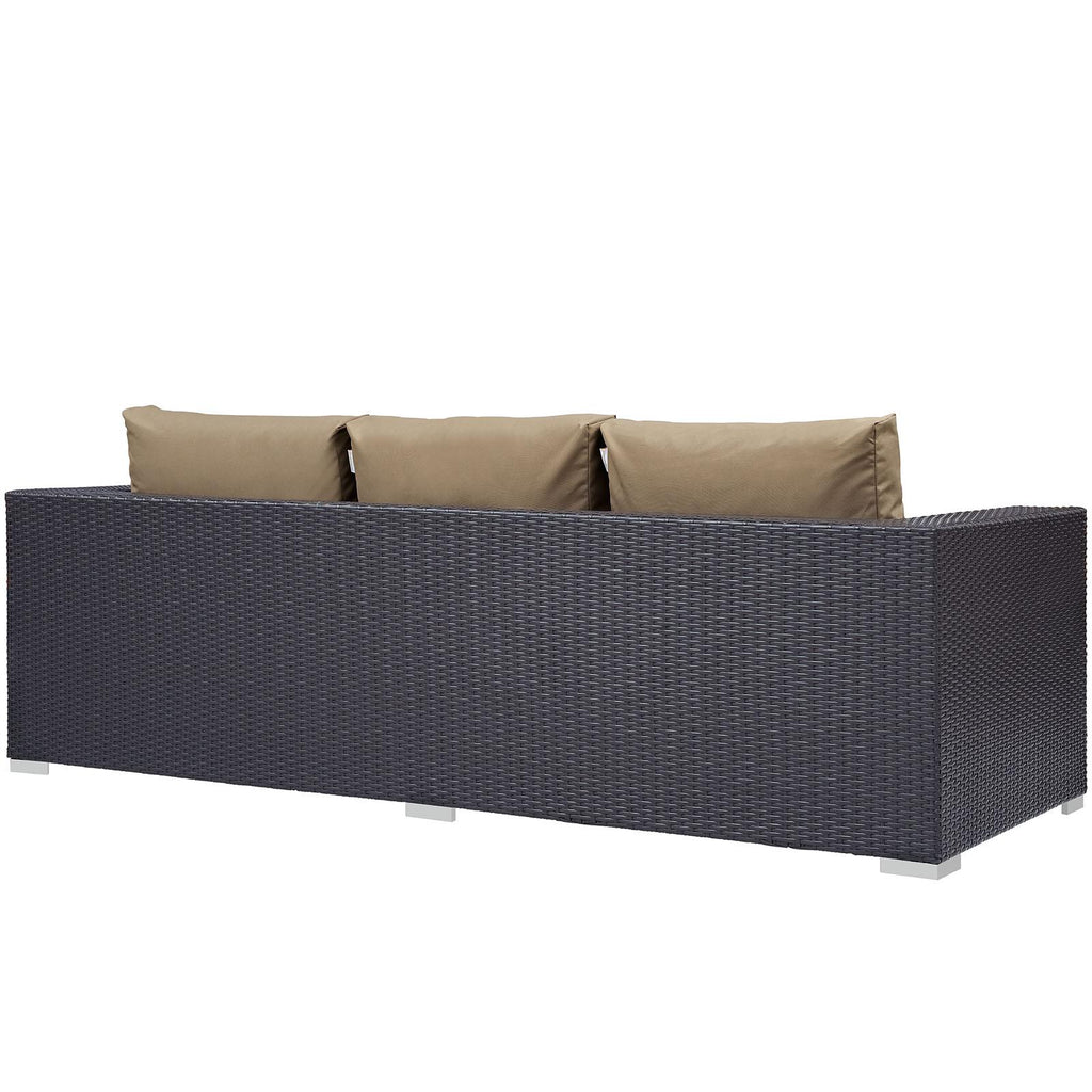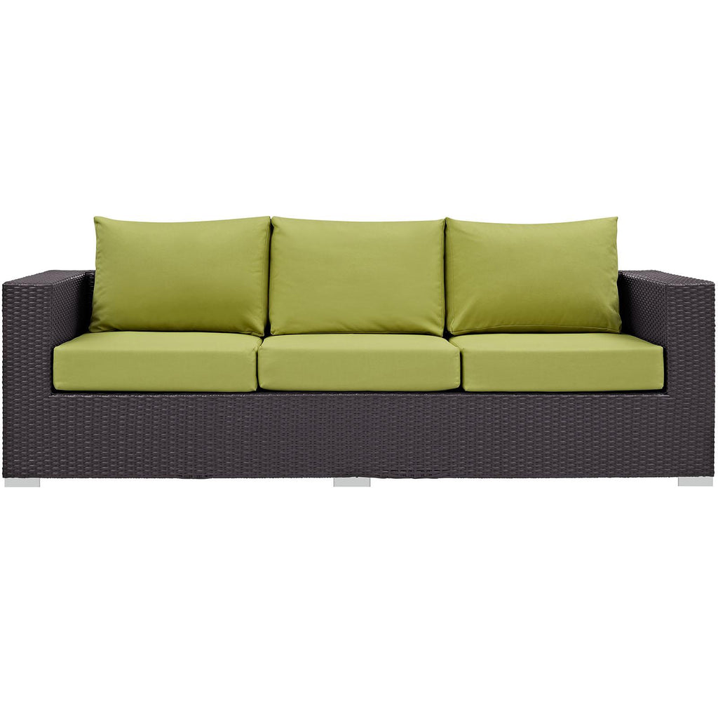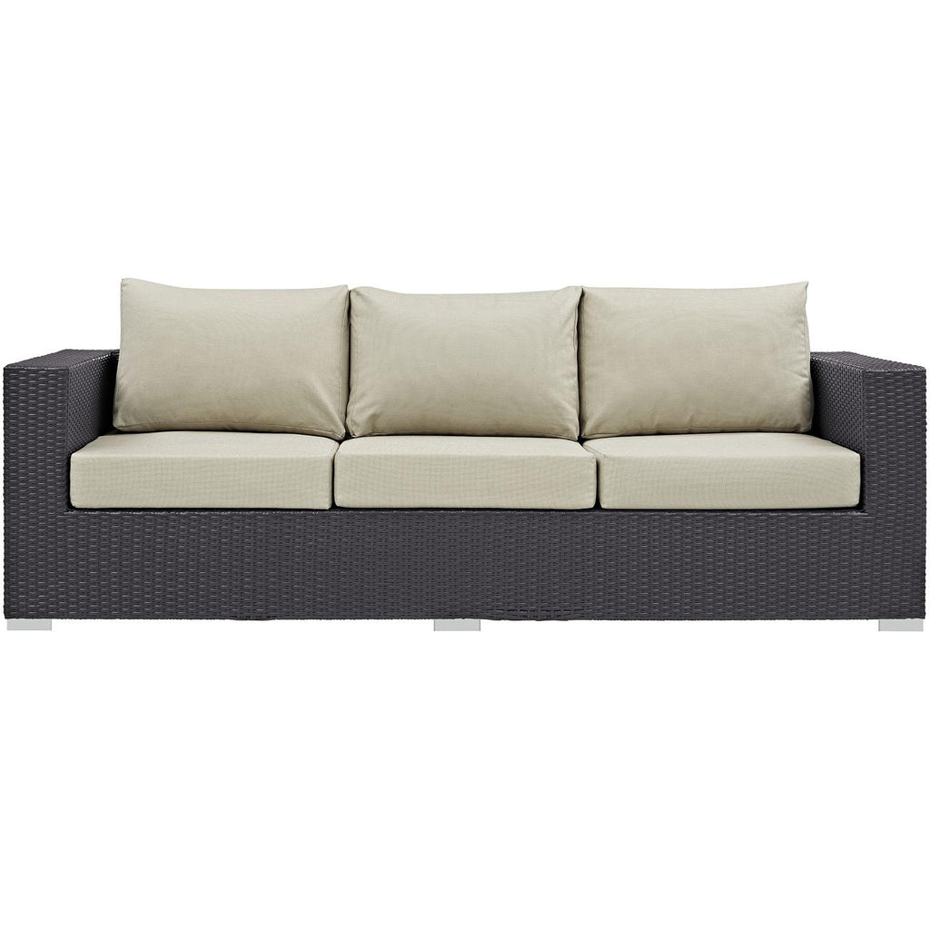Gather stages of sensitivity with the Convene Outdoor Sectional series. Made with a synthetic rattan weave and a powder-coated aluminum frame, Convene is a versatile patio sofa from an outdoor collection that shifts and combines according to the spontaneous needs of the moment. Outfitted with all-weather fabric cushions, Convene is an outdoor couch that leaves a positive impression on friends and family while enhancing your patio, backyard, or poolside repast in this series of palpable distinction. This installment of the series is an Outdoor Patio Sofa.