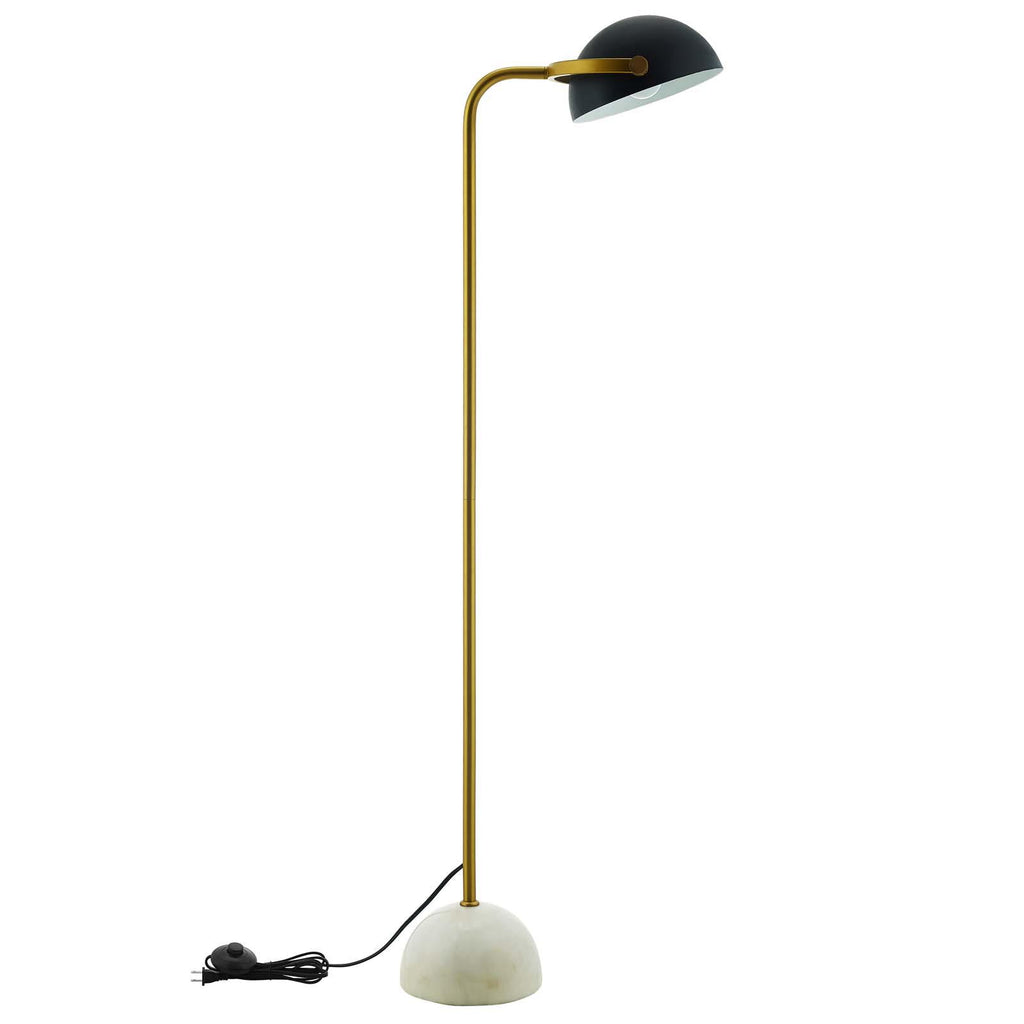 Convey is a chic, mid-century inspired floor lamp perfect for the modern living room, entryway or reading nook. The round white marble base offers a striking contrast to the matte black metal shade, while the bronze finish on the stem completes the trio of sophisticated colors. Convey is the floor lamp of choice for the contemporary home or apartment and takes one E26 60W bulb (not included).