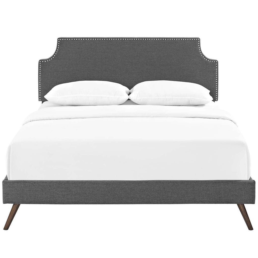Accelerate your bedroom decor with the Corene Platform Bed. Made with a solid wood frame upholstered in polyester fabric, Corene features tapered wood legs, plastic foot glides, stylish headboard, and ten sturdy wood slats with a centered supporting bar and two support legs for enhanced stability. Due to the wooden slat support system, the use of a box spring is unnecessary. Corene supports memory foam mattresses such as our Aveline series. Perfect for mid-century modern, minimalist and contemporary bedrooms. Mattress not included. Assembly Required.