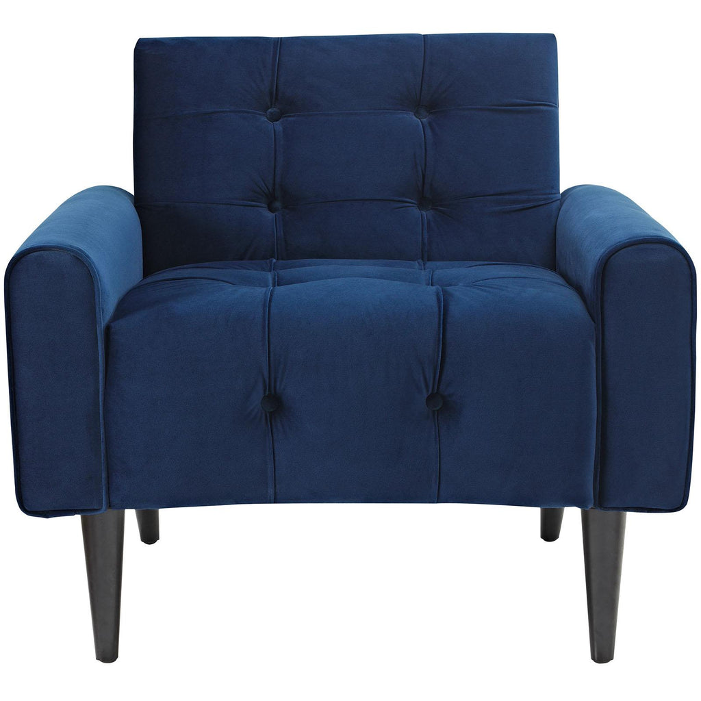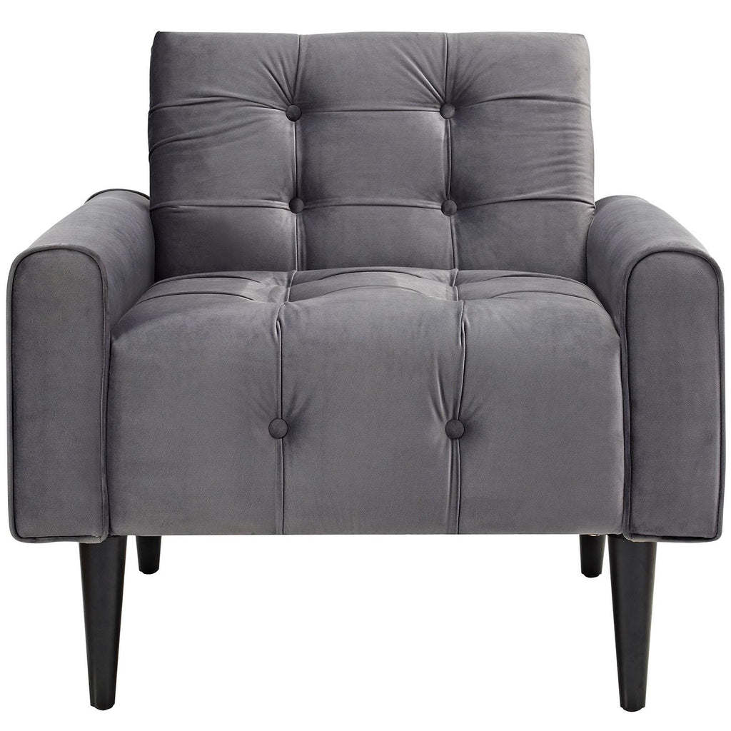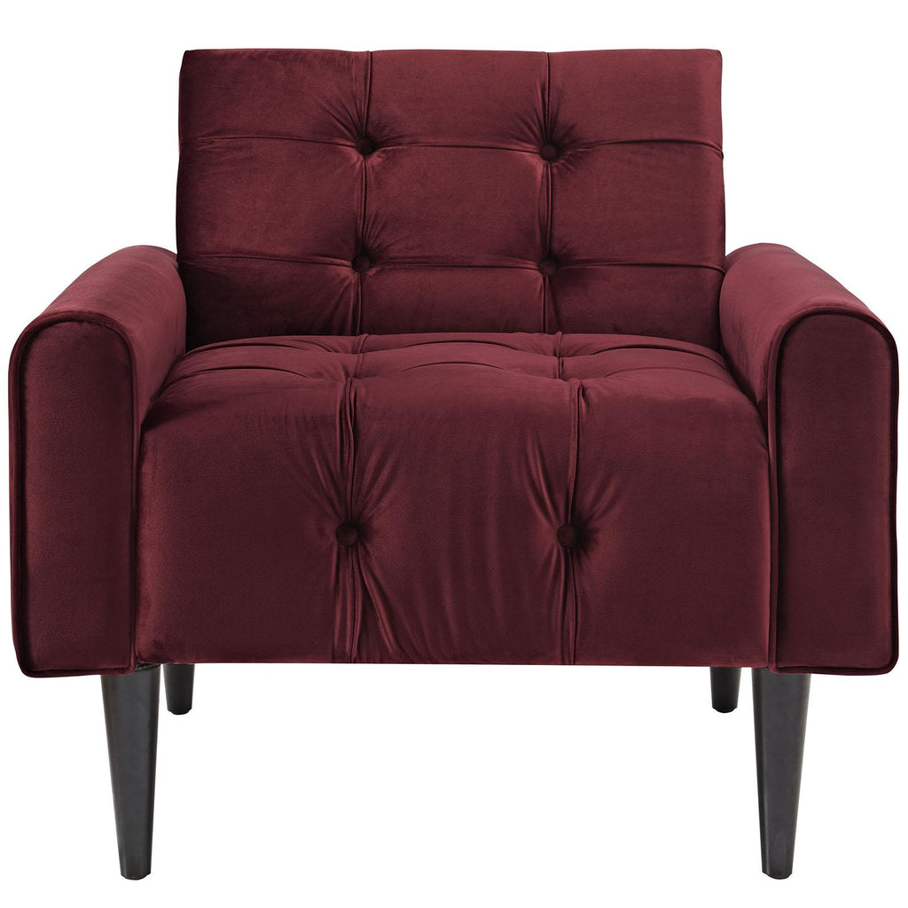 Transform your living room with the Delve Performance Velvet Armchair. Luxuriously tufted buttons adorn the soft, stain-resistant performance velvet polyester upholstery for an exquisite look of exceptional appeal. Featuring gently curved armrests and a fashionably chic shape, Delve comes densely padded in foam with solid wood legs. The perfect addition to the modern home or apartment, invigorate your home or apartment d�cor today with this exceptional piece. Matching sofa also available. Comes with non-marking foot glides.