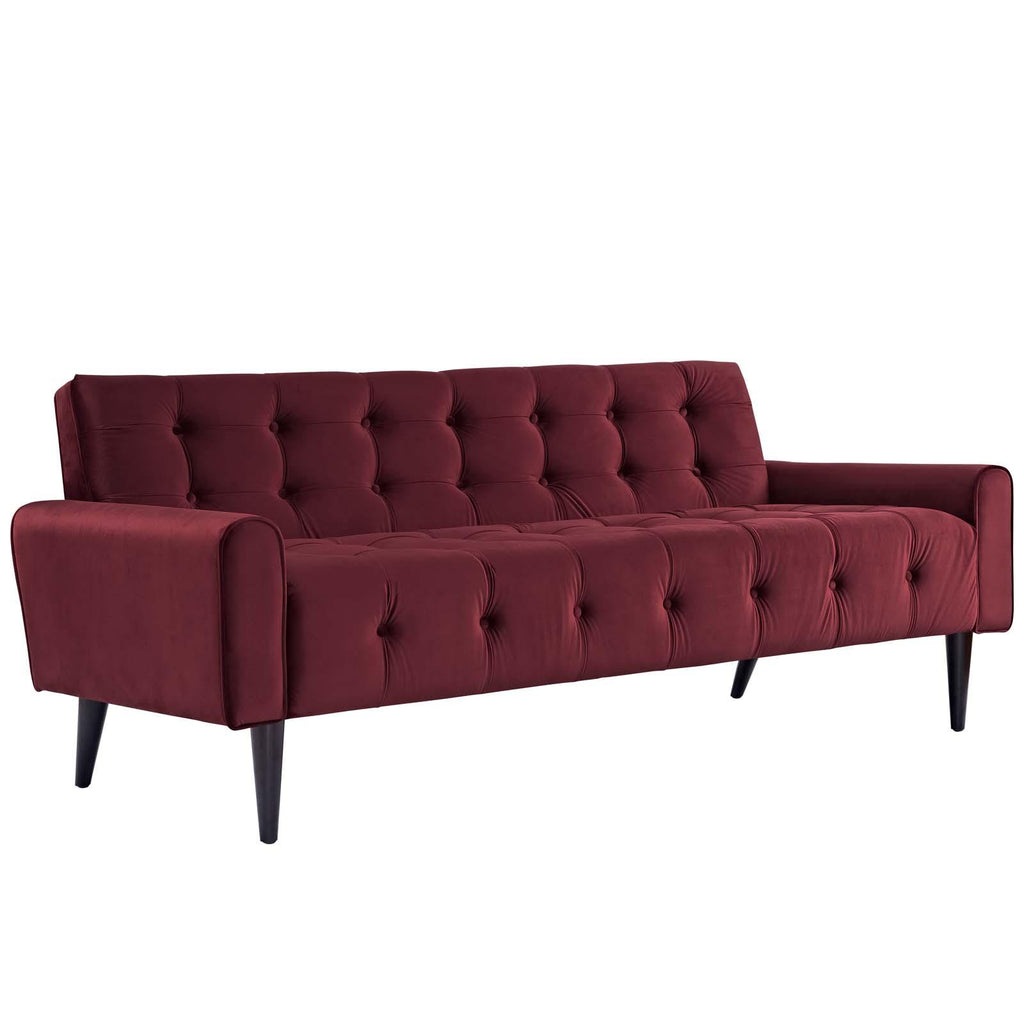 Transform your living room with the Delve Performance Velvet Sofa. Luxuriously tufted buttons adorn the soft, stain-resistant performance velvet polyester upholstery for an exquisite look of exceptional appeal. Featuring gently curved armrests and a fashionably chic shape, Delve comes densely padded in foam with solid wood legs. The perfect addition to the modern home or apartment, invigorate your home or apartment d�cor today with this exceptional piece. Matching armchair also available. Comes with non-marking foot glides.