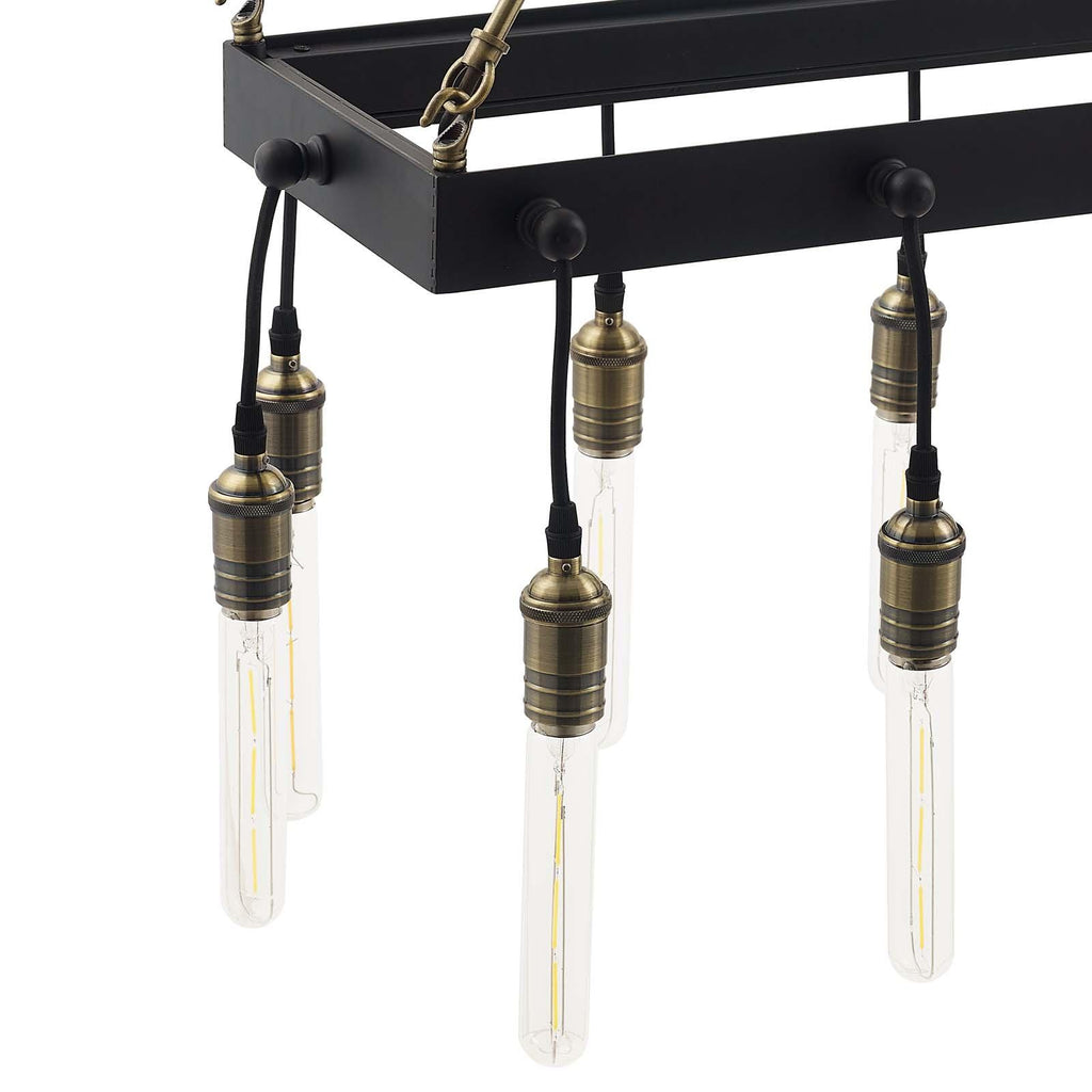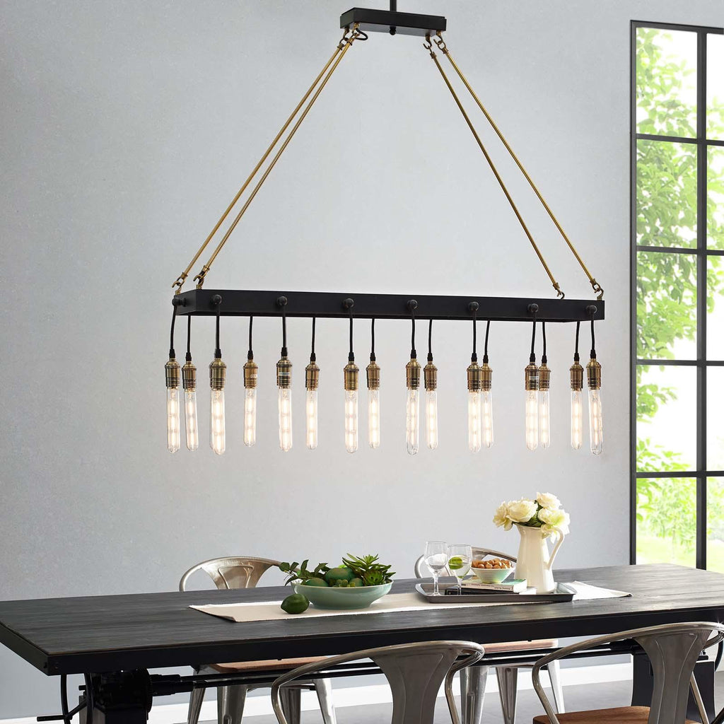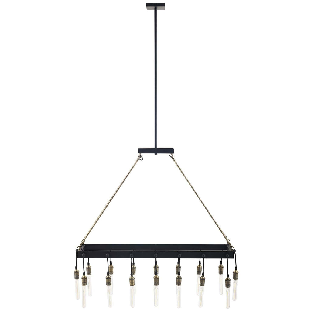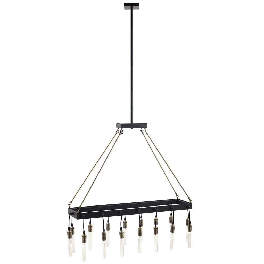 Light up your living space with the Demarcate Modern Farmhouse Pendant Chandelier. Featuring a matte black metal construction and flush wall mount, Demarcate is a stylish ceiling light fixture perfect for the modern farmhouse dining room, entryway or living room. Sixteen antique brass sockets hang suspended from the clean-lined frame casting illumination upon your surroundings. This industrial modern pendant chandelier requires sixteen E26 25-watt bulbs (not included).