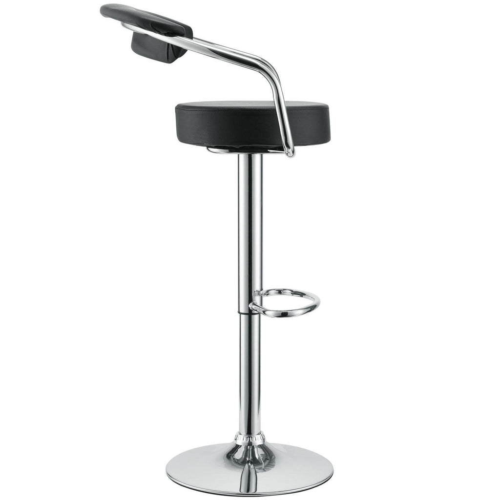 The 1950's Diner Bar Stool is a great choice for folks who want supreme comfort in a Bar Stool. Thick cushion greets the user like an old friend and an upholstered back rest invites you to lean back and relax. The base and pole's shiny chrome finish give it a delightfully retro feel. Have the best of yesterday today. Set Includes: Two - 50's Diner Bar Stools Steel Frame 3.5" Inch Cushion 360-Degree Swivel Adjustable Height Overall Product Dimensions: 18"L x 21"W x 34 - 42.5"H Seat Dimensions: 13.5"L x 24.5 - 33"H Armrest Height: 29.5 - 37.5"H
