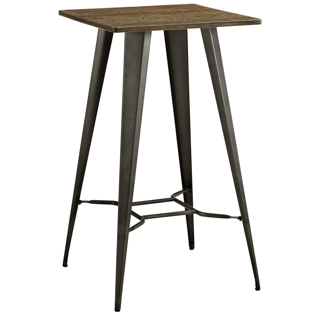 Replenish your surroundings with the Direct Table Series. Streamline d�cor with tapered gunmetal finish steel legs and a rich dark grain bamboo top that leave plenty of room for stellar conversations. Direct aptly compliments urban and industrial dwellings with a sleek and sturdy design that keeps your visual space clean. This installment of the series is a square bar table that stands ready to enhance your bar and dining experience. Set Includes: One - Direct Bar Table Rich Grain Lamination on Bamboo Powder Coated Steel Base Gunmetal Finish Non-Marking Plastic Foot Pads Assembly Required Overall Product Dimensions: 23.5"L x 23.5"W x 41"H Floor to Underside of Table: 40"H Base Dimensions: 23"L x 23"W Leg Dimensions: 11"H