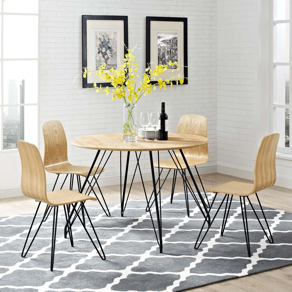 Slide into flowing conversation with the mid-century styled Drift Dining Side Chair. Enjoy fine dining and good company with a retro vintage dining steel chair featuring hairpin legs, waterfall plywood bentwood seat design, and organic L-shape. Outfitted with matte coated steel legs and non-marking foot caps, update your mid-century or contemporary modern decor with this sturdy and reliable seating choice.