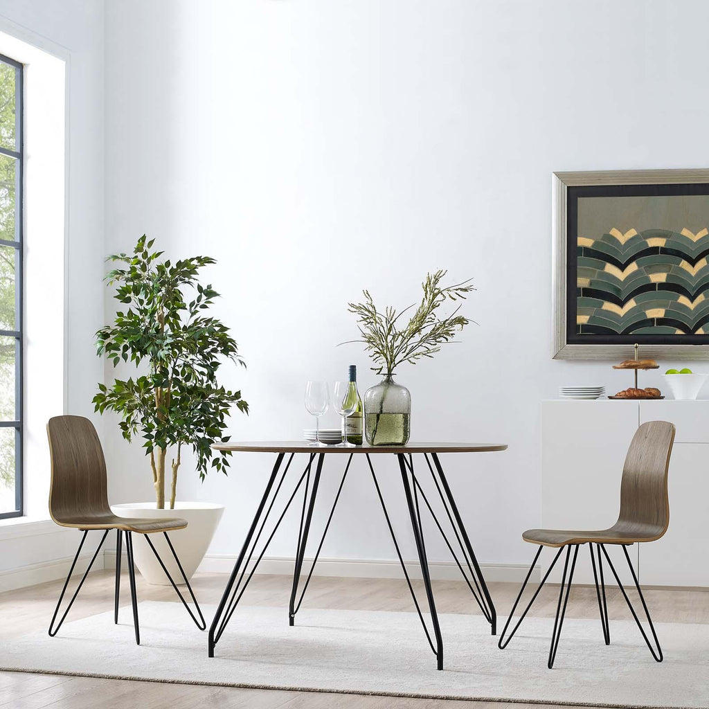 Slide into flowing conversation with the mid-century styled Drift Dining Side Chair. Enjoy fine dining and good company with a retro vintage dining steel chair featuring hairpin legs, waterfall plywood bentwood seat design, and organic L-shape. Outfitted with matte coated steel legs and non-marking foot caps, update your mid-century or contemporary modern decor with this sturdy and reliable seating choice.