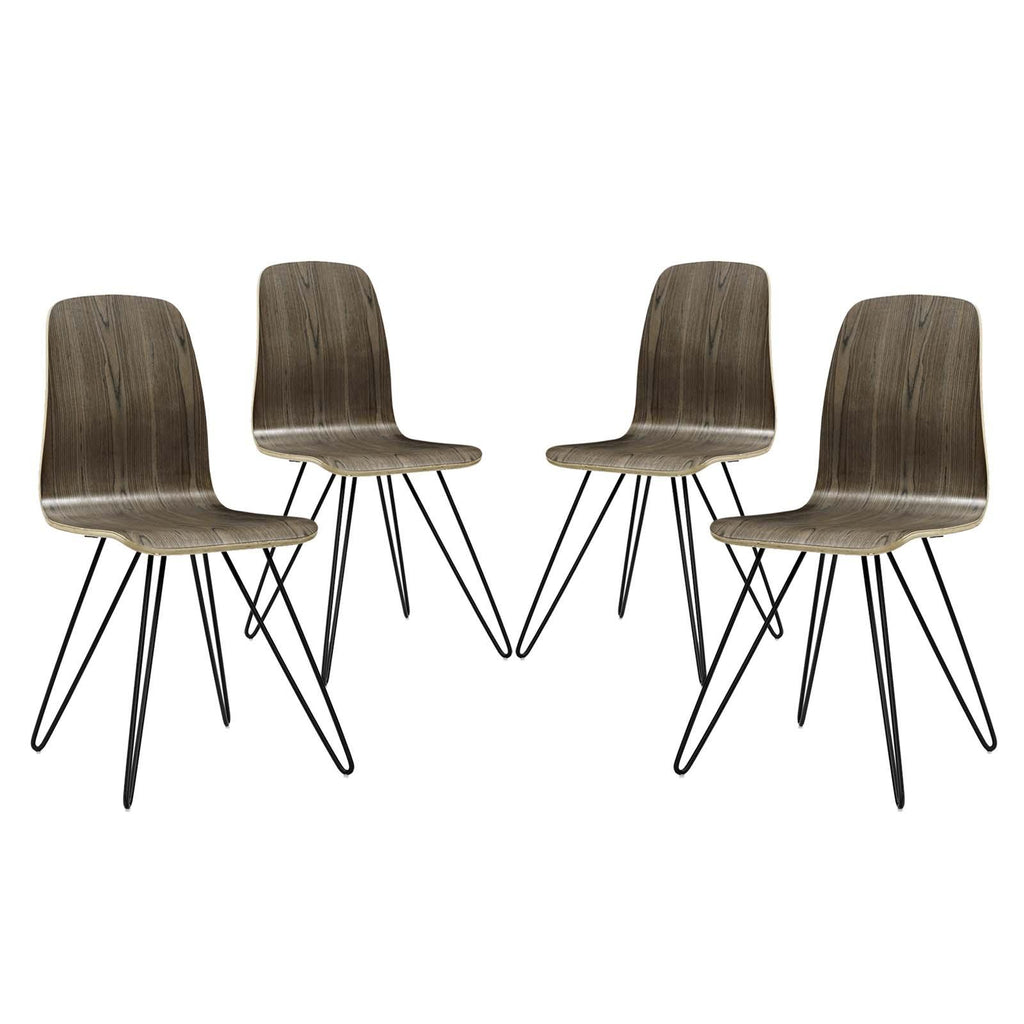 Slide into flowing conversation with the mid-century styled Drift Dining Side Chair. Enjoy fine dining and good company with a retro vintage dining steel chair featuring hairpin legs, waterfall plywood bentwood seat design, and organic L-shape. Outfitted with matte coated steel legs and non-marking foot caps, update your mid-century or contemporary modern decor with this sturdy and reliable seating choice.