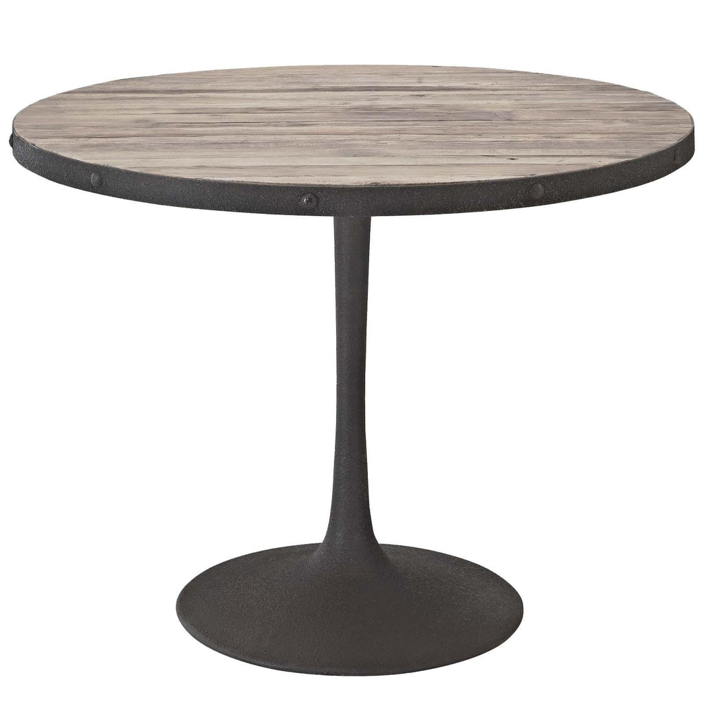 Deliberately implement down-to-earth aesthetics with the Drive industrial modern dining table. Fashioned on a cast iron pedestal base, the round pine top is braced in a rim of iron to connote progress amidst rustic conditions. In contrast to the standard four-legged tables, the single stand variety has been gaining popularity over the past 60 years. Now with the resurgence of industrial modernism, the warehouse of yesteryear comes remodeled into its present stance as an art form.