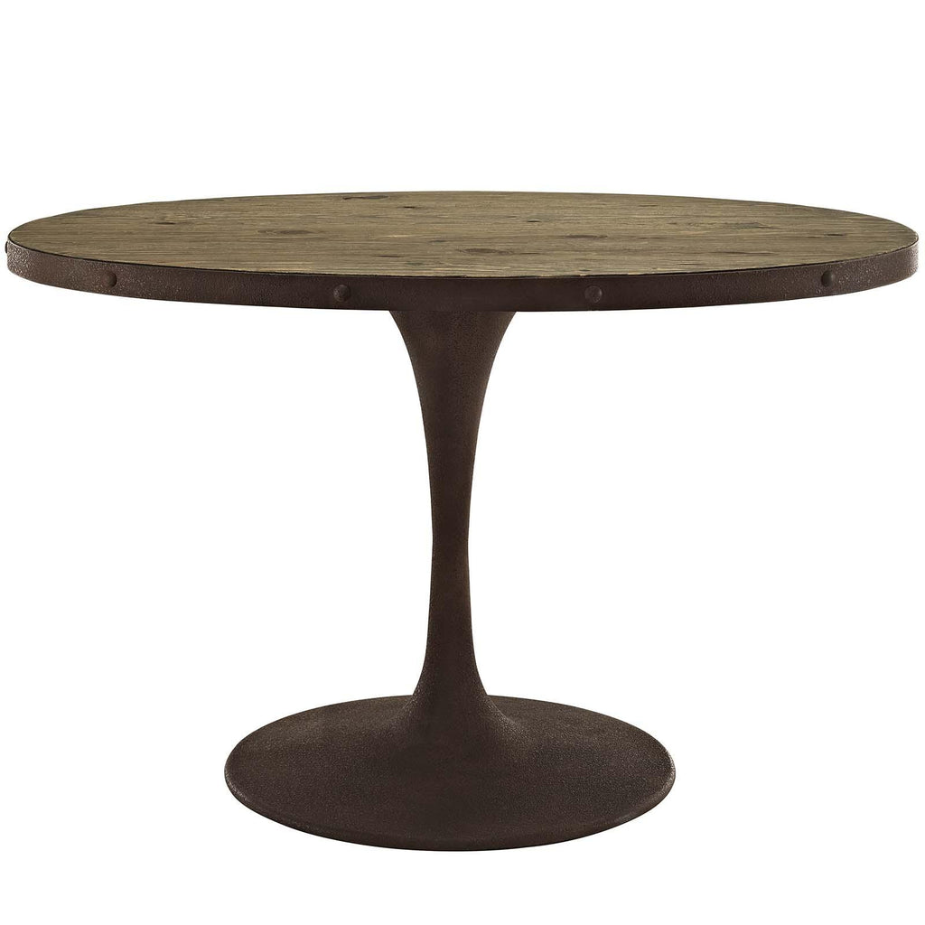Deliberately implement down-to-earth aesthetics with the Drive industrial modern oval dining table. Fashioned on a cast iron pedestal base, the oval pine top is braced in a rim of iron to connote progress amidst rustic conditions. In contrast to the standard four-legged tables, the single stand variety has been gaining popularity over the past 60 years. Now with the resurgence of industrial modernism, the warehouse of yesteryear comes remodeled into its present stance as an artform.