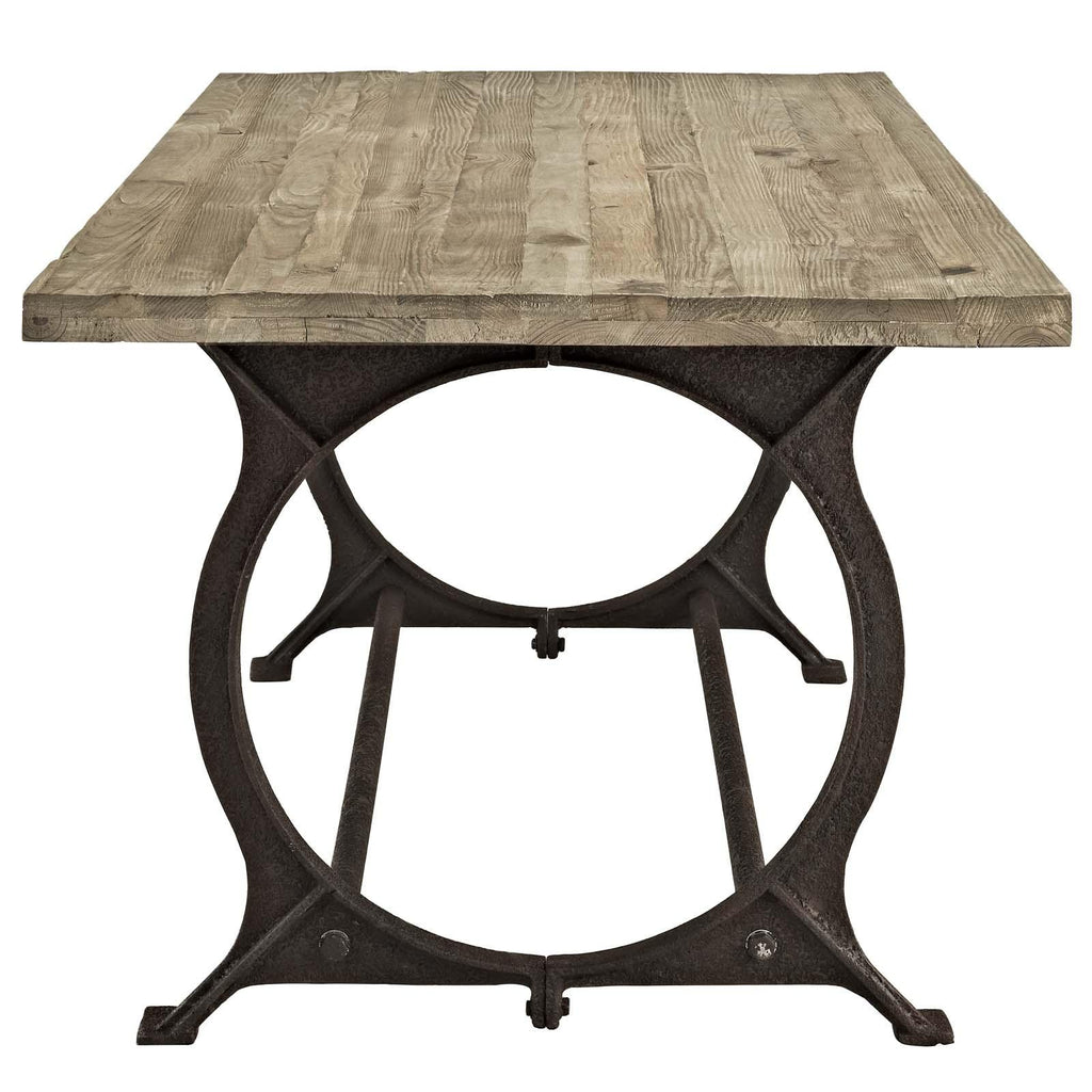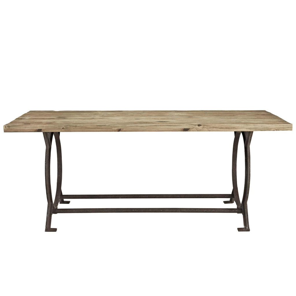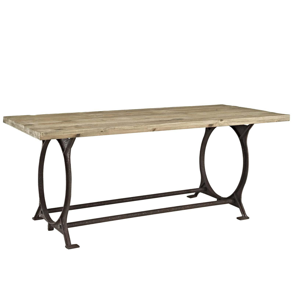 Instill lasting memories with the Effuse industrial modern dining table. Fashioned with a cast iron base and solid pine wood top, Effuse could easily be confused with a draftsman's table. But on closer inspection, this rustic piece becomes appreciated as an artisan�s symbolic rendering of the industrial age aesthetics. Set Includes: One - Effuse Wood Top Dining Table Industrial modern dining table Solid pine wood top Iron cast base Actual wood color may vary Overall Product Dimensions: 35"L x 76"W x 30"H Width of Legs: 61.5"W