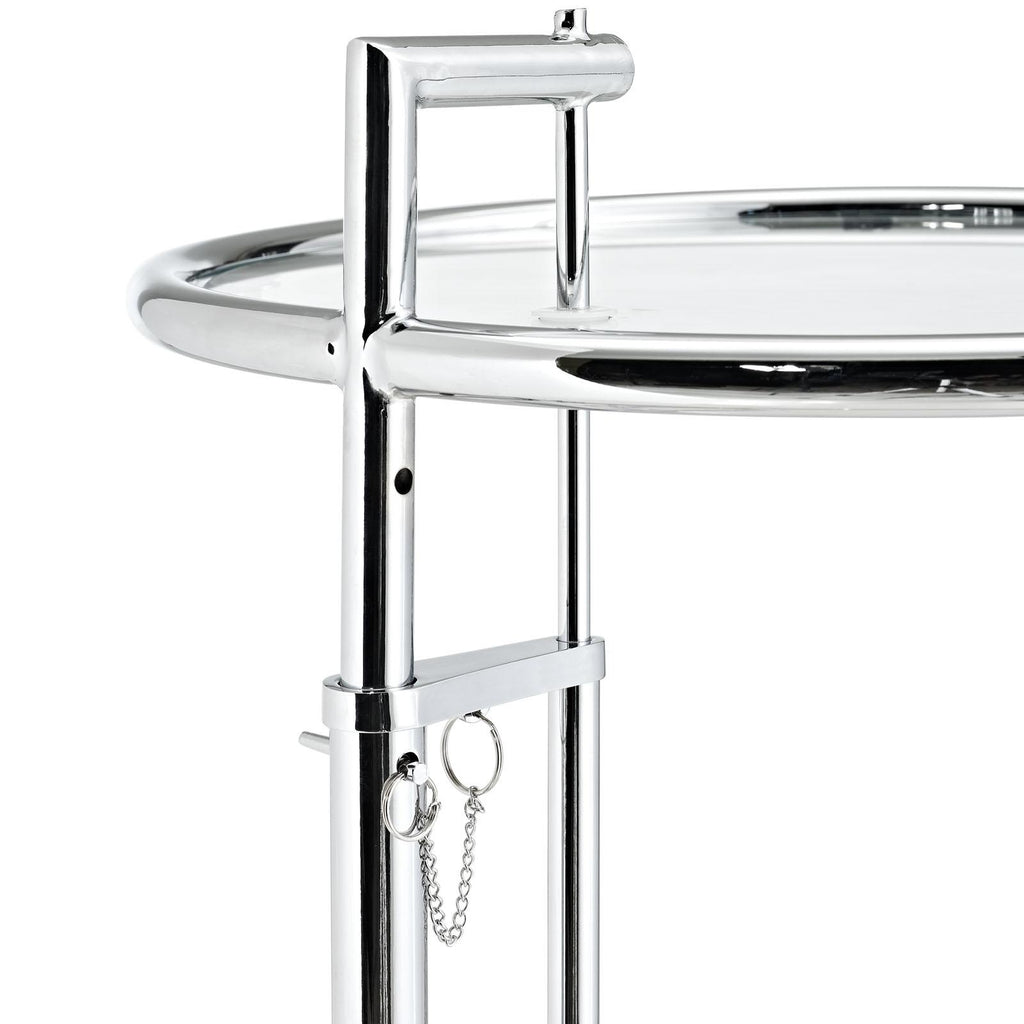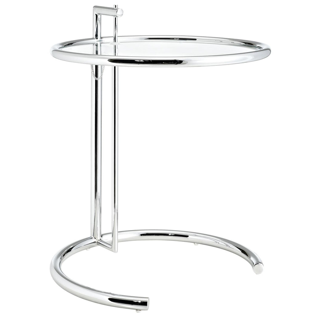Create open energy and flowing space with the Eileen Chrome Stainless Steel End Table. Eileen is an ideal addition for your living room, lounge room, home office, or entryway, and features a sturdy open rim stainless steel silhouette for a timeless, fluid look. Outfitted with a tempered glass top, Eileen is height adjustable at five settings, and seamlessly complements a variety of modern decor styles.