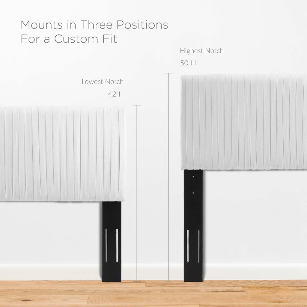 Reimagine master bedroom or guest bedroom decor with the Eloise Channel Tufted Performance Velvet Full/Queen Headboard. Rich in vintage modern elegance and glam deco style, this full/queen size headboard features retro channel tufting, luxe velvet texture, and a sleek clean-lined silhouette. Sit back and relax while reading or watching TV in bed with this padded headboard's dense foam and soft stain-resistant velvet upholstery. A backdrop for a variety of bedding styles, this height-adjustable headboard fits full and queen size bed frames with its three mounting positions. Assembly required.