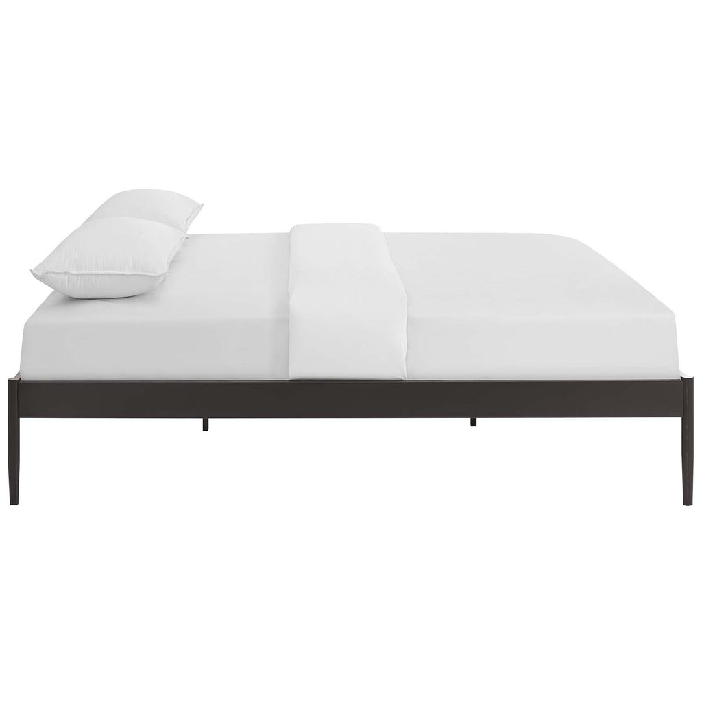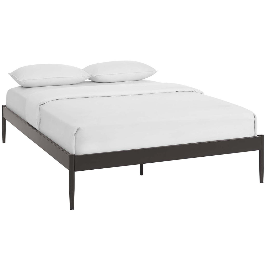 Resolve bedroom conundrums with the Elsie Bed Frame. With a slatted birchwood support system and sturdy steel frame, Elsie eliminates the need for a boxspring and firmly supports the various mattress types on the market such as memory foam, spring, latex, and hybrid. Featuring tapered dowel legs with non-marking foot caps, and two reinforced beams with extra support legs, Elsie is a well-made, durable bed built to last. Elsie holds a weight capacity of up to 1300 lbs and showcases a sleek, minimalist design perfect for the modern home. Mattress Not Included. Set Includes: One - Elsie King Bed Frame Modern Platform Bed Frame Sturdy Powder Coated Steel Frame Slatted Birchwood Support System Weight Capacity Up To 1300lbs Non-Marking Foot Caps Assembly Required Does Not Attach To Headboards Distance Between Slats: 3.5"W Overall Product Dimensions: 83.5"L x 79.5"W x 15"H Bed Inner Size: 81"L x 77"W Floor to Top of Bed frame: 15"H