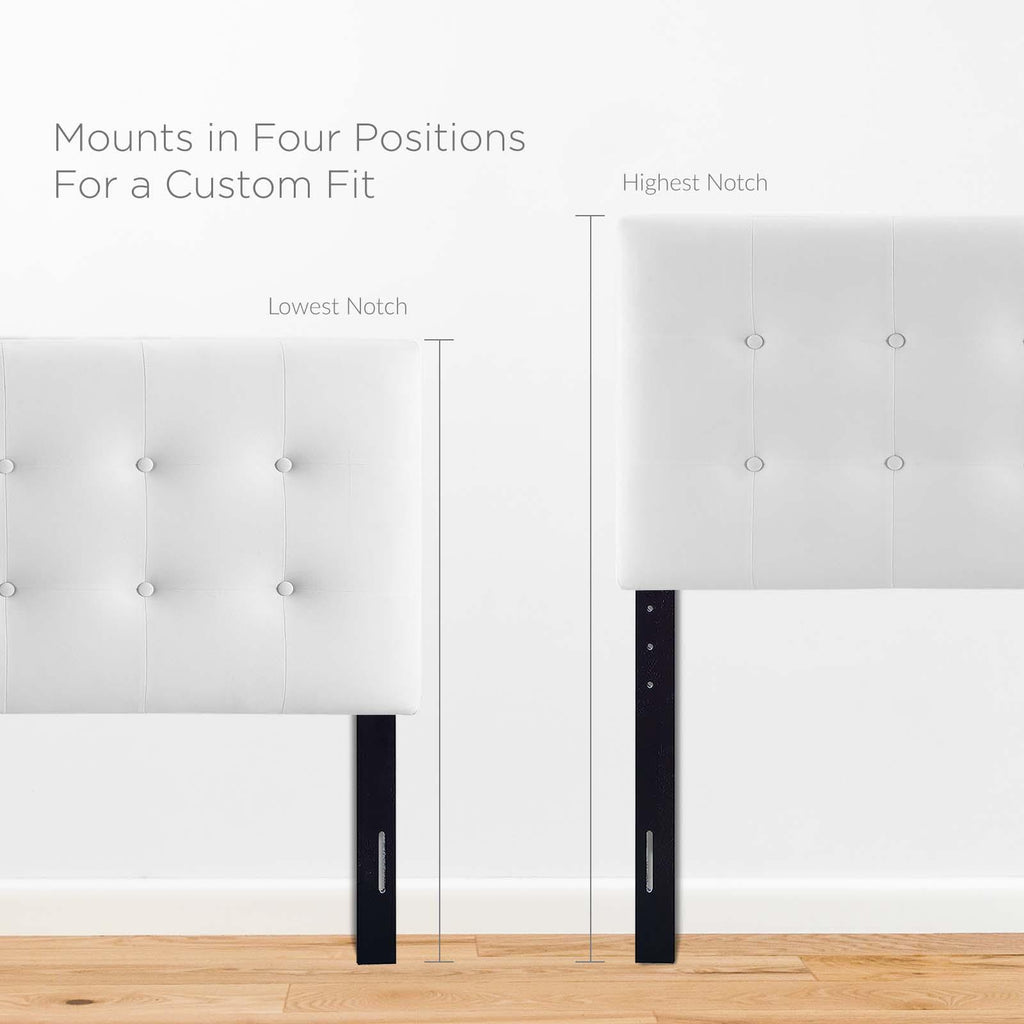 Instill classic elegance and modern luxury with the Emily Performance Velvet Biscuit Tufted King Headboard. Emily features beautiful biscuit button tufting for plush vintage glamour and timeless appeal. An elegant centerpiece to a master suite or guest bedroom, this upholstered velvet headboard for king bed frames provides a soft, stain-resistant update for premium comfort while relaxing, reading, or conversing in bed. Solidly constructed from plywood and fiberboard with dense foam padding, this king-size velvet headboard comes with five mounting positions that are height adjustable from 45" - 52.5".