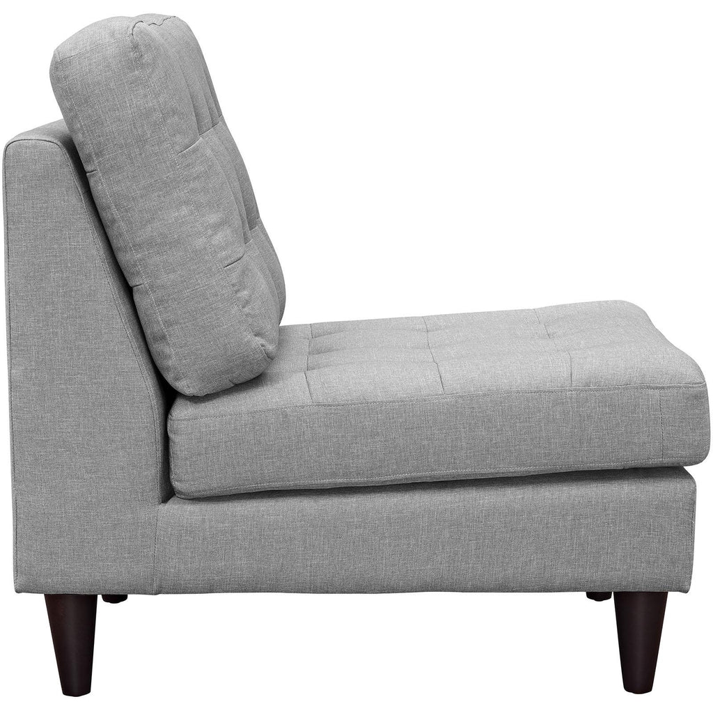 End the rule of unjust sovereignties that wage a useless war for your interiors. Empress leaves the would-be heiress of holistic furnishings in the dust with a design that rivals any competitor. Empress is heralded with deeply tufted buttons, plush cushions, and armrests that convey that perfect air of nobility. The black stained solid wood legs come with plastic glides to prevent floor scratching, and the fine fabric upholstery leaves the recipients feeling richly rewarded.