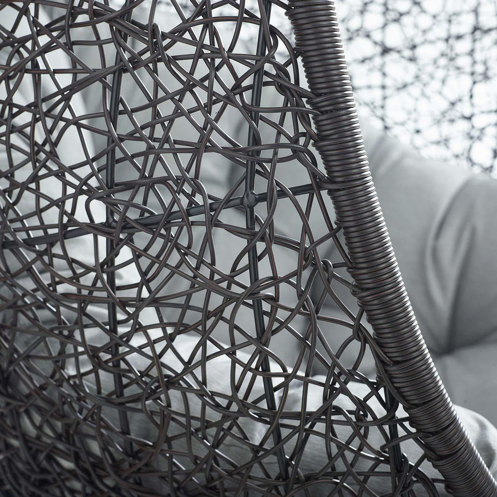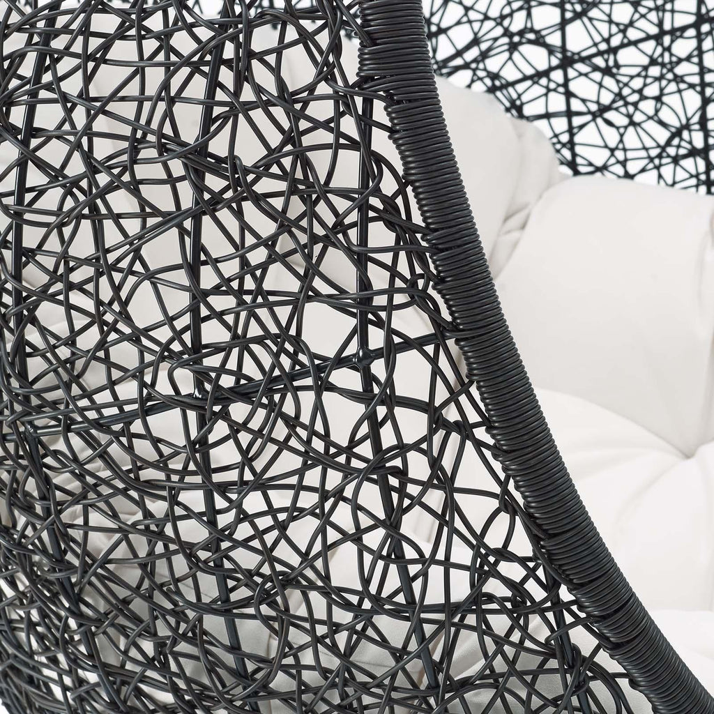Escape to an exotic island of serenity with the Encase Outdoor Patio Swing Chair. Made with a luxurious synthetic rattan weave and plush all-weather fabric cushion, Encase Outdoor Hanging Chair makes it easy to immerse yourself in a good book. Encase Patio Swing Chair comes with a sturdy powder-coated steel frame and adjustable 78.5� inch steel chain that works well to enliven your patio, backyard, porch, or poolside d�cor. Stand-alone hanging swing chairs are also popularly used in indoor lounge, living, or bedroom spaces. Hide Swinging Chair is weather and UV resistant. Set Includes: One - Encase Sunbrella� Fabric Swing Lounge Chair Without Stand 78.5� Adjustable Steel Hanging Chain Sturdy Powder-Coated Steel Frame Sunbrella Washable Polyester Cushion UV Resistant and All-Weather Luxurious Synthetic Rattan Weave Weight Capacity: 265 Pounds Assembly Required Overall Product Dimensions: 43.5"L x 40"W x 125.5"H Chair Dimensions: 26"L x 37"W x 47"H Cushion Dimensions: 44.5"L x 44.5"W x 5"H