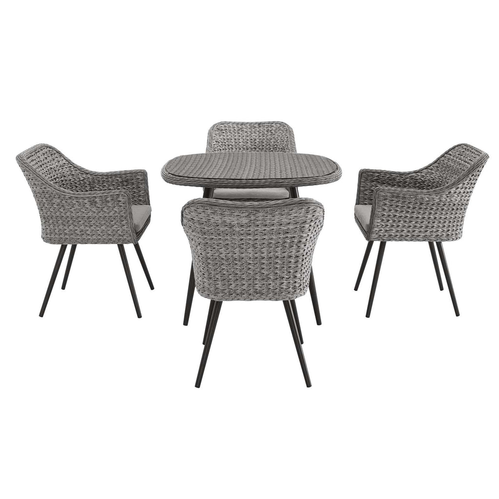 Gather family and friends to indulge in good weather and a premium lounge experience with the Endeavor Outdoor Patio Dining Collection. Sporting a stylish contemporary modern look, Endeavor features waterproof, black powder-coated aluminum legs, non-marking foot caps, all-weather cushions, tempered glass top, and a designer gray-on-gray tone synthetic rattan weave perfect for upgrading a variety of balcony, garden, backyard, and patio decors. Perfect for entertaining and al fresco dining.