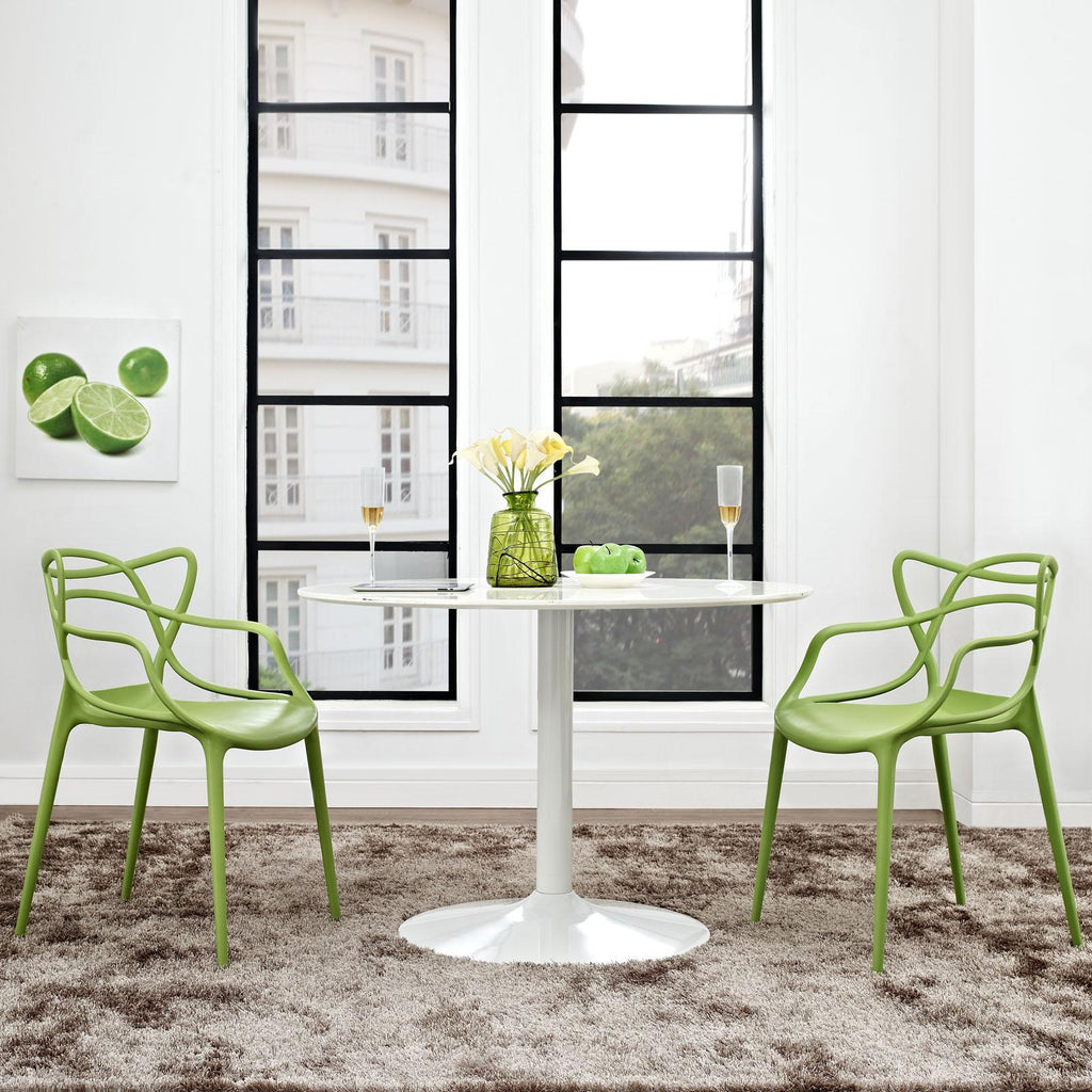 Twists and turns greet you at every turn with the Entangled dining chair. Designed to portray verdant growth amidst organic conditions, there is no staged pretension here. Unabashedly, Entangled is a molded plastic dining chair that conveys the complexity of drive and ambition, love and life. Outfitted with foot caps to prevent your floor from scratching, the Entangled dining chair comes fully assembled with an easy wipe clean surface.
