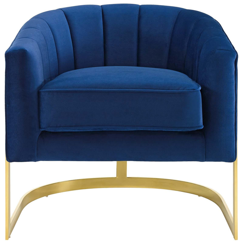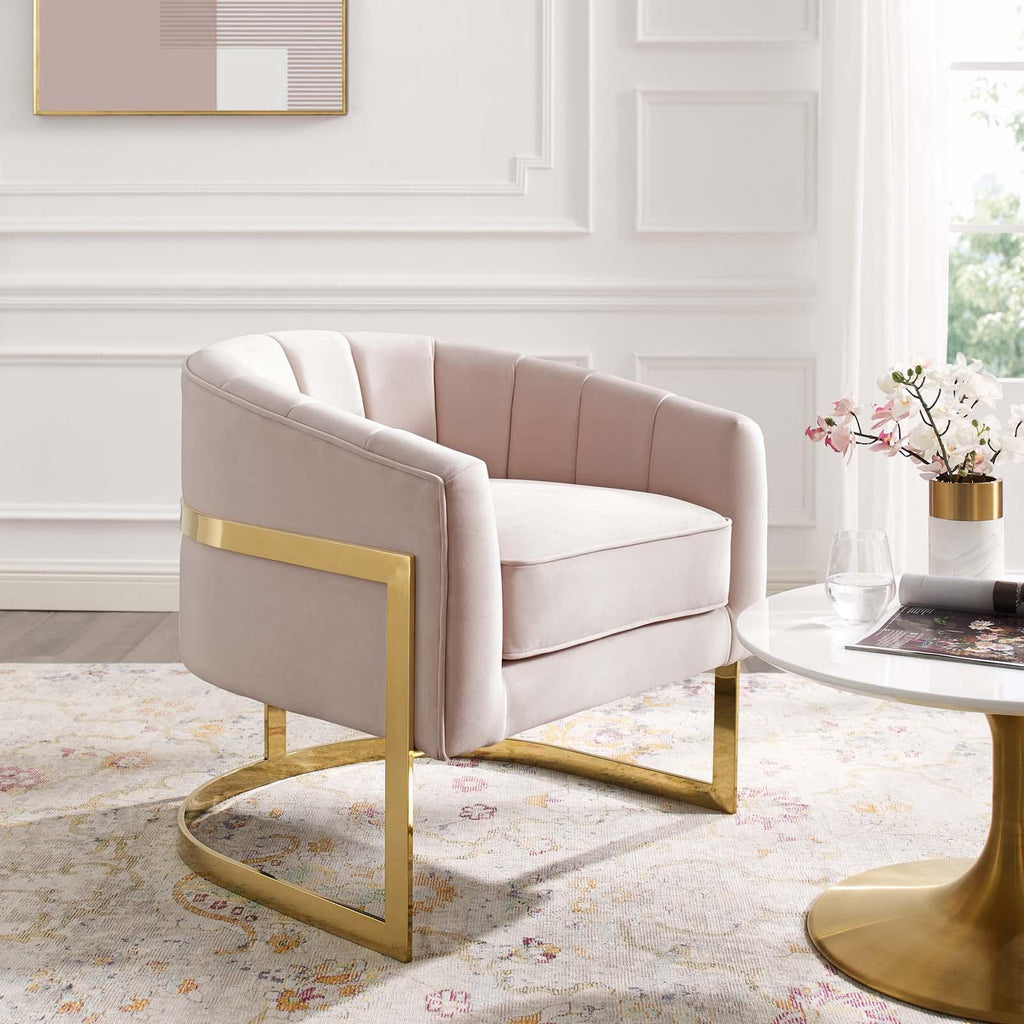 Update your living room, entryway, lounge room, bedroom, or home office space with the vintage glamour of the Esteem Accent Armchair. Esteem delivers a luxurious seating experience with soft, stain-resistant performance velvet upholstery, an individually wrapped pocket coil system, and dense foam padding. Complete with a removable seat cushion with a removable cover, Esteems features interior vertical channel tufting along an organic barrel back design of this plush modern accent chair.