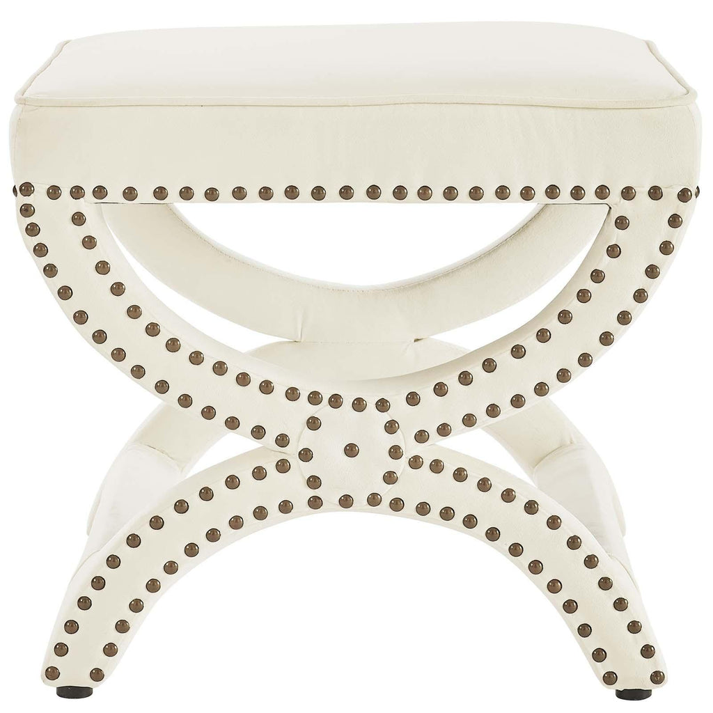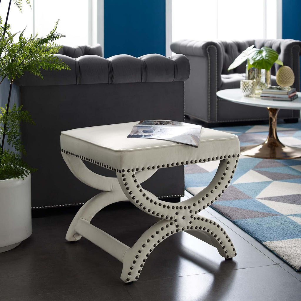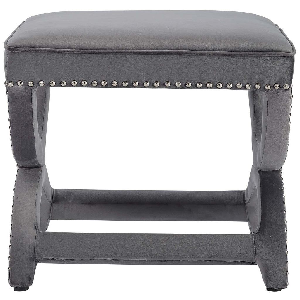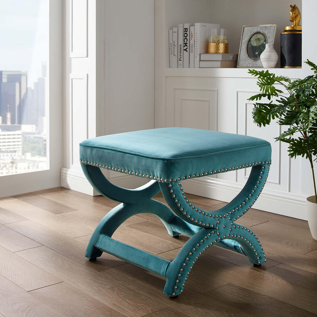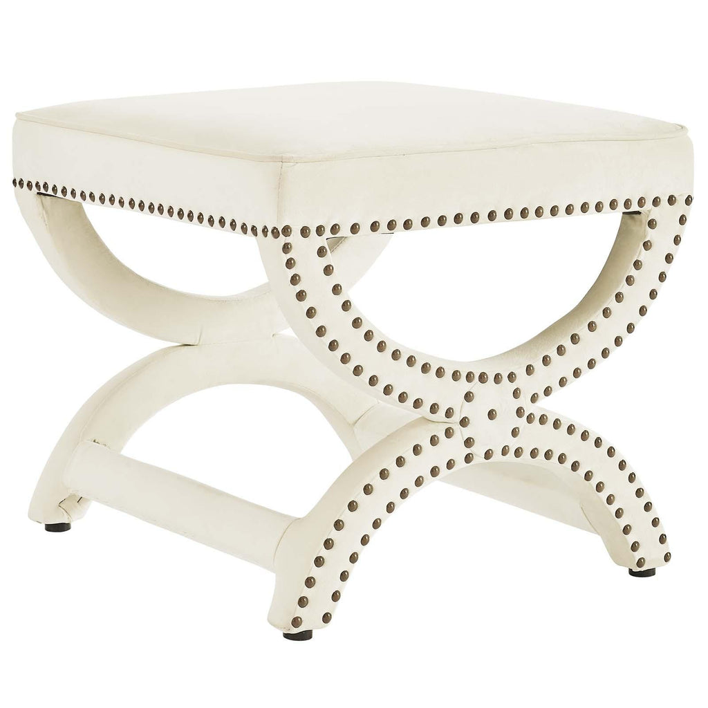 Add instant charm to your home or apartment with the Expound Performance Velvet Ottoman. Bringing visual appeal to a functional seat, Expound sits atop elegantly curved legs with chic linear stretchers, while timeless nailhead buttons delicately line the sweeping frame. A perfectly soft and cozy ottoman for the chic modern lifestyle, Expound is upholstered with stain-resistant performance velvet fabric and features dense foam padding for ultimate comfort. Expound is available in a variety of engaging colors and is the perfect addition to bed, living, and lounge rooms, and has a weight capacity of 331 lbs. Comes fully assembled.