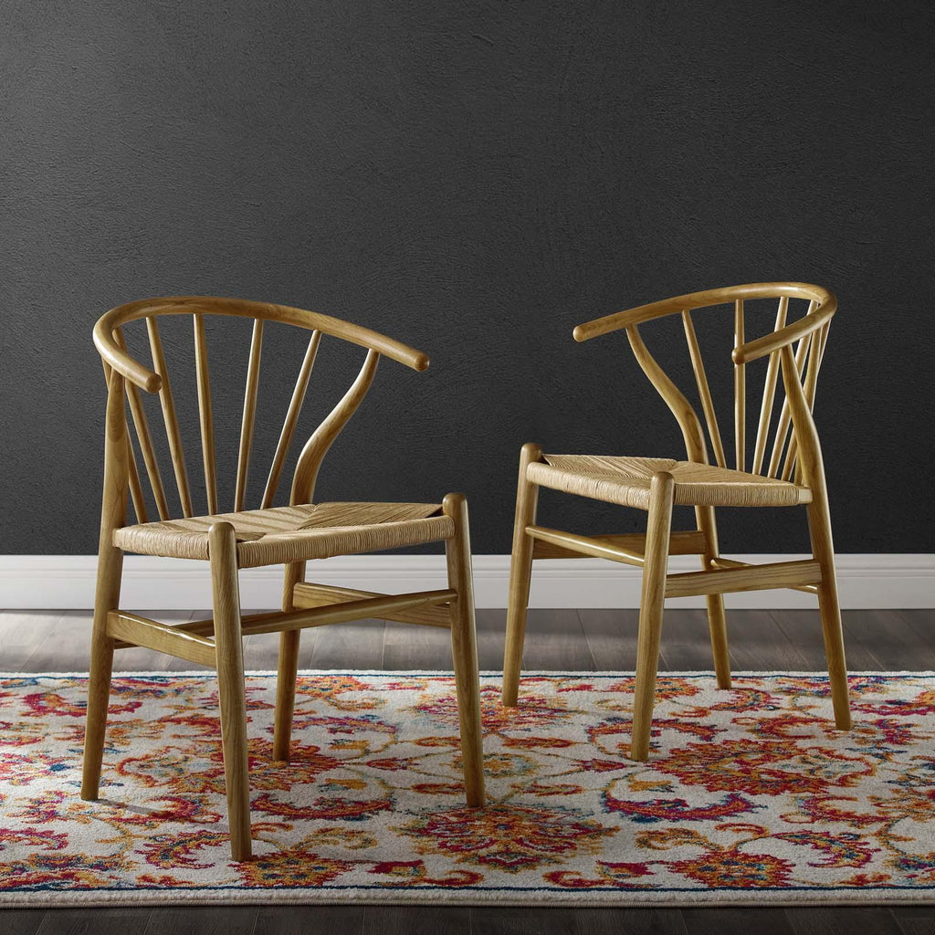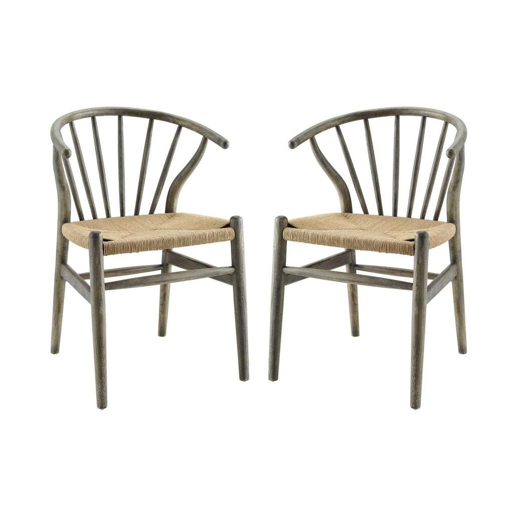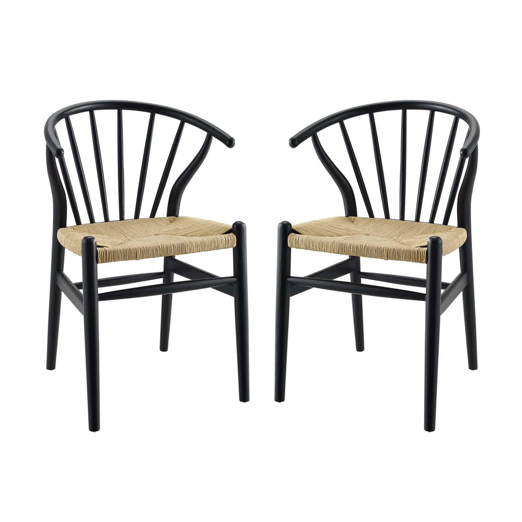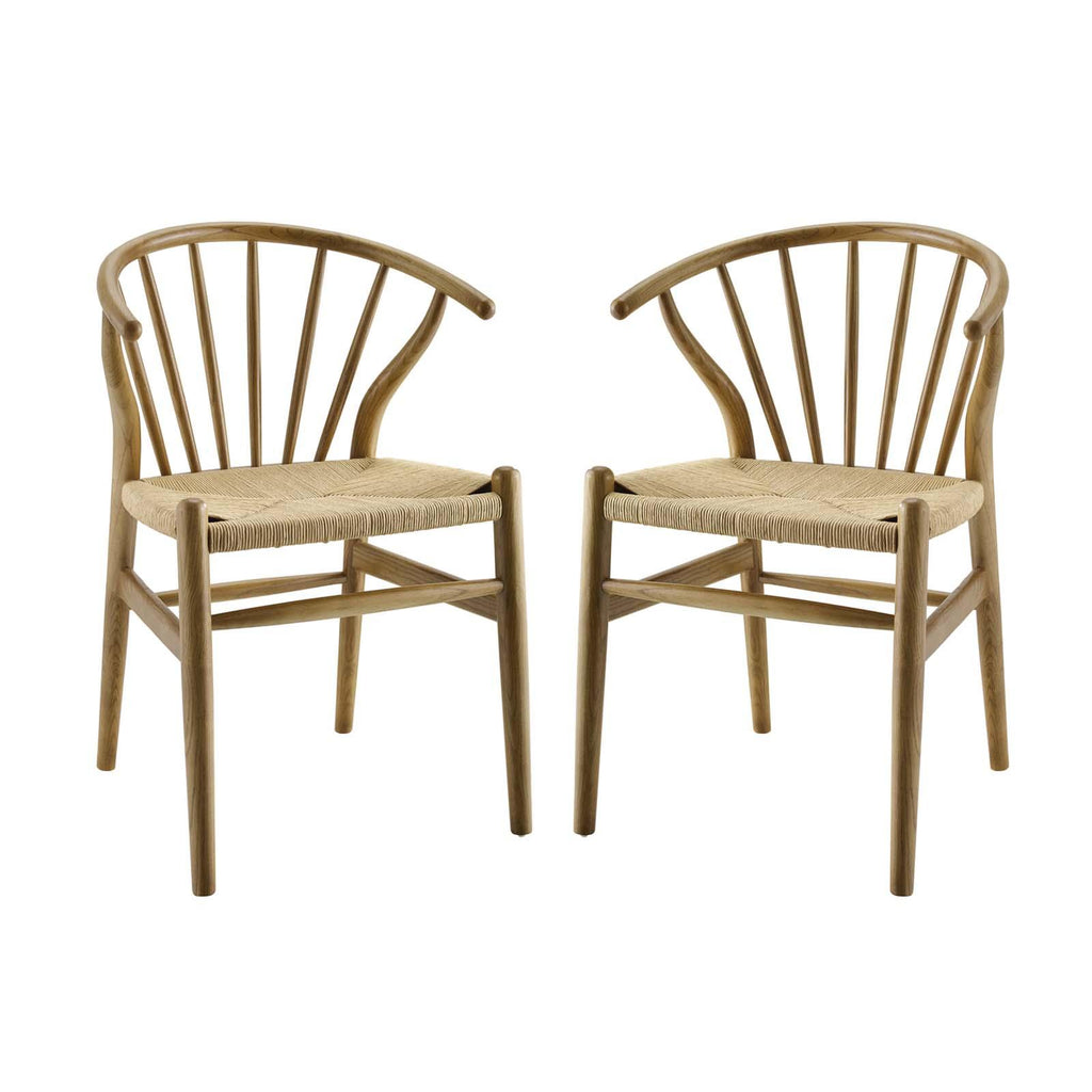 Bring Scandinavian style to your dining space with the Flourish Dining Side Chair Set of 2. Featuring a sweeping curved back, tapered wood legs, and classic spindles, the modern farmhouse design of this dining chair gets a contemporary update with delicate craftsmanship and stylish detail. The seat is made of paper rope, a new twine that is soft, anti-static and durable, while providing beautiful contrast and a soft texture. Complete with a solid wood frame and support rods make this piece a lasting choice for the dining room, kitchen table, or living area. Complement a variety of d�cor settings from mid-century to contemporary modern with this wood dining chair set. Weight Capacity: 286 lbs Set Includes: Two - Flourish Spindle Dining Side Chair Modern Farmhouse Dining Chair Set of 2 Soft and Durable Paper Rope Seat Rounded Spindle Back Solid Hardwood Frame Includes Plastic Foot Caps Chair Weight Capacity: 286 lbs Comes Fully Assembled Overall Product Dimensions: 21"L x 45"W x 31.5"H Individual Chair Dimensions: 21"L x 22.5"W x 31.5"H Seat Dimensions: 15.5"L x 19.5"W x 18.5"H