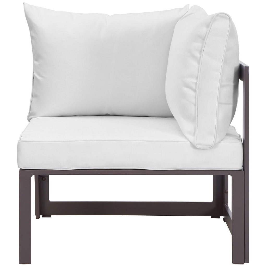Nestled within close proximity to forests, rivers, valleys, and the Pacific Ocean rests the Fortuna Outdoor Patio Collection. Enjoy the good life with the versatile Fortuna Patio Sectional Sofa Set in an engaging arrangement that makes it easy to enjoy conversations together with friends and family. Made of powder-coated aluminum with all-weather polyester cushions, Fortuna Outdoor Patio Sofa Set appeals to the modern palate without overwhelming the senses. This installment of the Fortuna Outdoor Series is a 9 piece patio sectional sofa furniture set perfect for contemporary patios, backyards, poolside, and other outdoor lounge areas. Set Includes: One - Fortuna Outdoor Cofee Table Two - Fortuna Outdoor Armchair Two - Fortuna Outdoor Corner Armchair Two - Fortuna Outdoor Ottoman Two - Fortuna Outdoor Side Table Powder Coated Aluminum Frame Machine Washable Polyester Cushion Water and UV Resistant Black Plastic Base Glides Tempered Glass w/ Brown Underside Some Assembly Required Overall Product Dimensions: 60.5"L x 179"W x 32.5"H Armchair Dimensions: 30.5"L x 30"W x 32.5"H Seat Cushion Dimensions: 29.5"L x 29.5"W x 4"H Back Cushion Dimensions: 29.5"L x 18"H Overall Corner Sofa Dimensions: 30"L x 30"W x 32.5"H Ottoman Dimensions: 30.5"L x 29.5"W x 16.5"H Side Table Dimensions: 29.55"L x 29.5"W x 16.5"H Side Table Top Dimensions: 29.5"L x 29.5"W x 1/16"H Side Table Legs Dimensions: 27.5"L x 24"W x 15.5"H Side Table Legs Thickness: 1/2"L x 2"W Coffee Table Dimensions: 23.5"L x 43.5"W x 16.5"H Glass Dimensions: 23.5"L x 43.5"W x 1/5"H Coffee Table Space Between Legs: 22"L x 37.5"W Coffee Table Floor to Underside of Table: 15.5"H